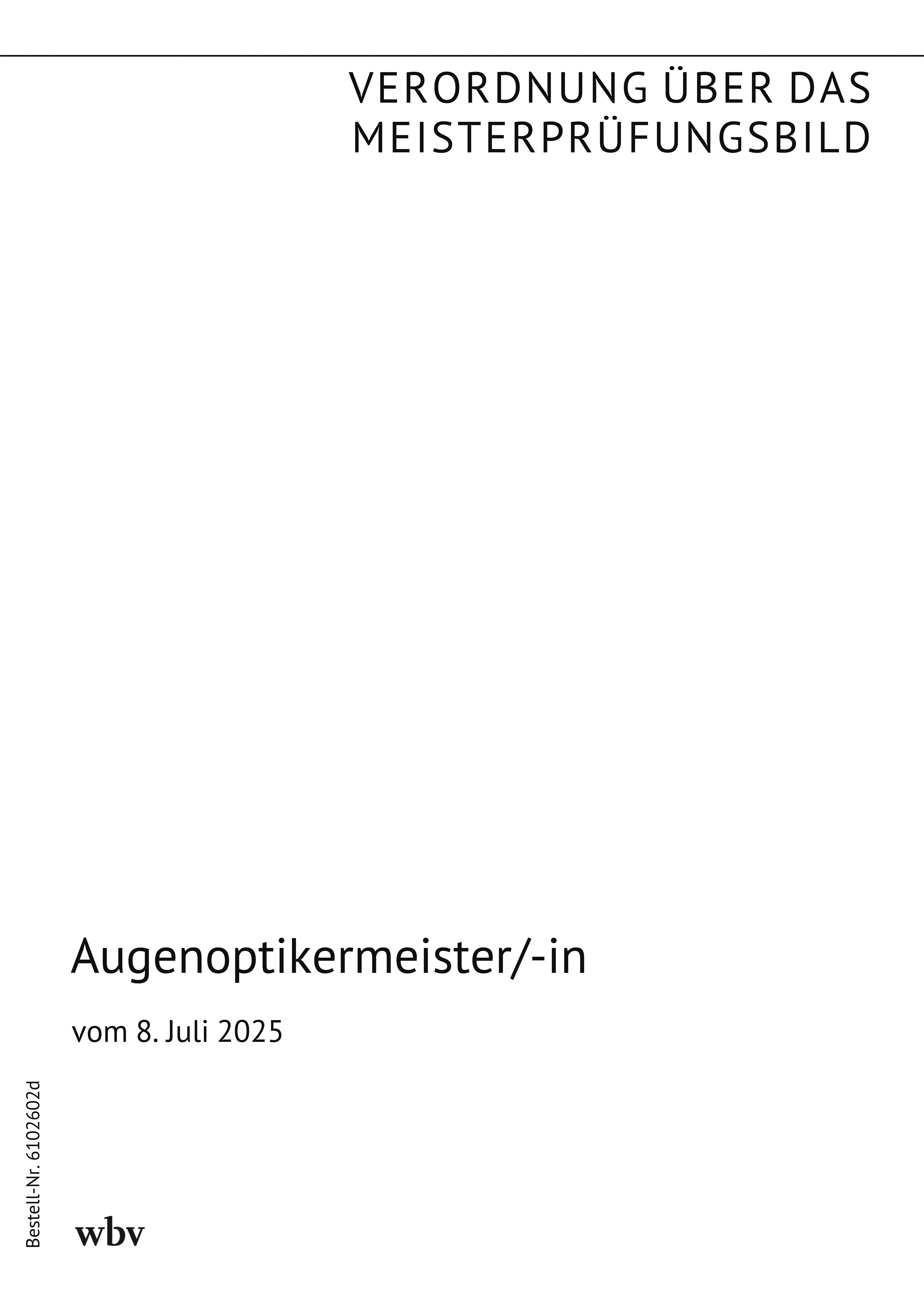 Verordnung über die Meisterprüfung in den Teilen I und II im Augenoptiker-Handwerk (Augenoptikermeisterverordnung - AugOptMstrV) vom 8. Juli 2025 (BGBI. I Nr. 157)