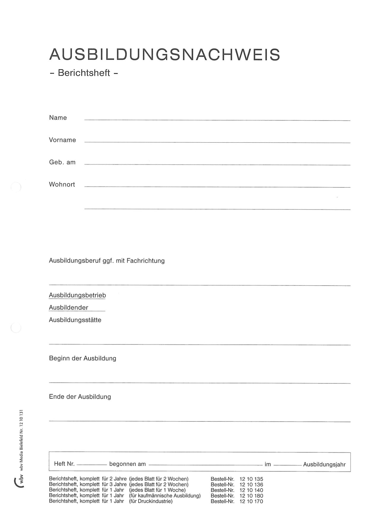 Ausbildungsnachweis - Berichtsheft
