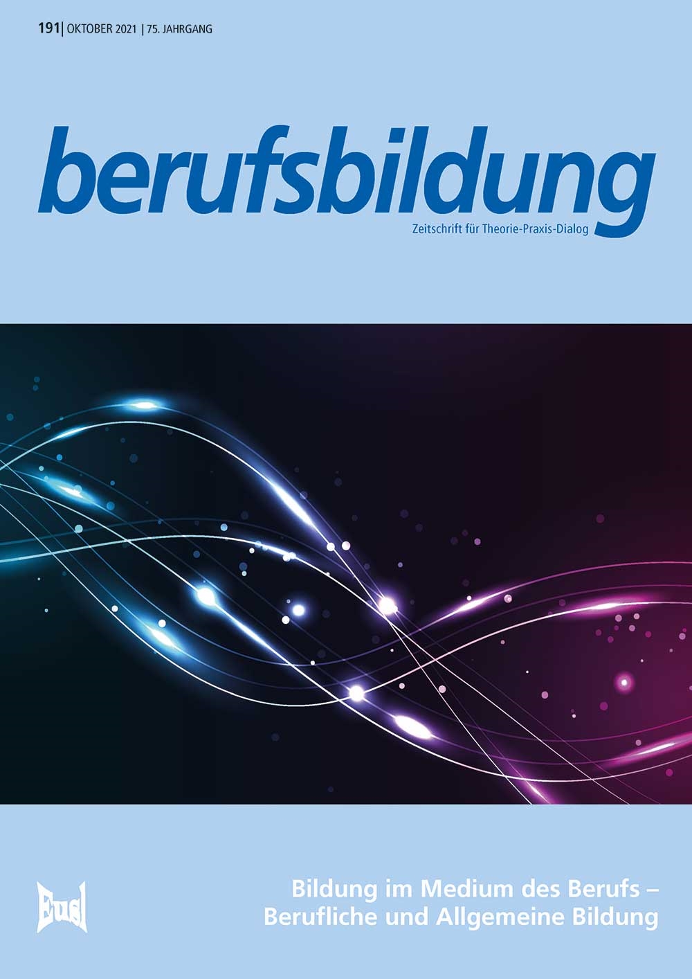 Friese, Marianne & Münk, Dieter (Hrsg.) (2021). Bildung im Medium des Berufs - Berufliche und Allgemeine Bildung. berufsbildung. 75(5). Bielefeld: wbv Publikation. https://doi.org/10.3278/BB2105W