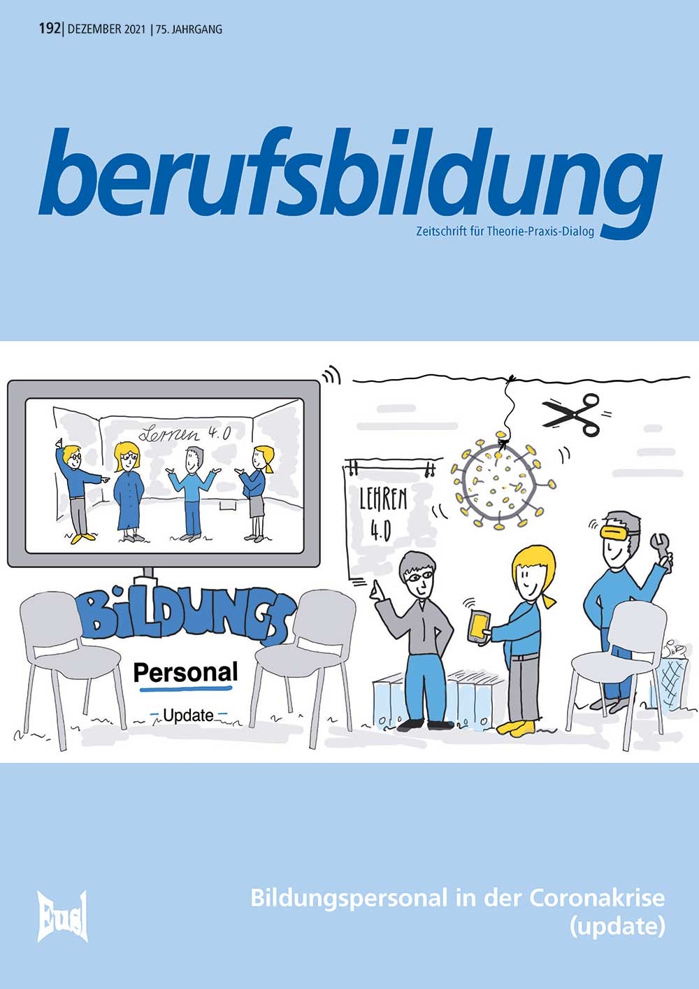 Friese, Marianne & Münk, Dieter (Hrsg.) (2021). Bildungspersonal in der Coronakrise (update). berufsbildung. 75(6). Bielefeld: wbv Publikation. https://doi.org/10.3278/BB2106W