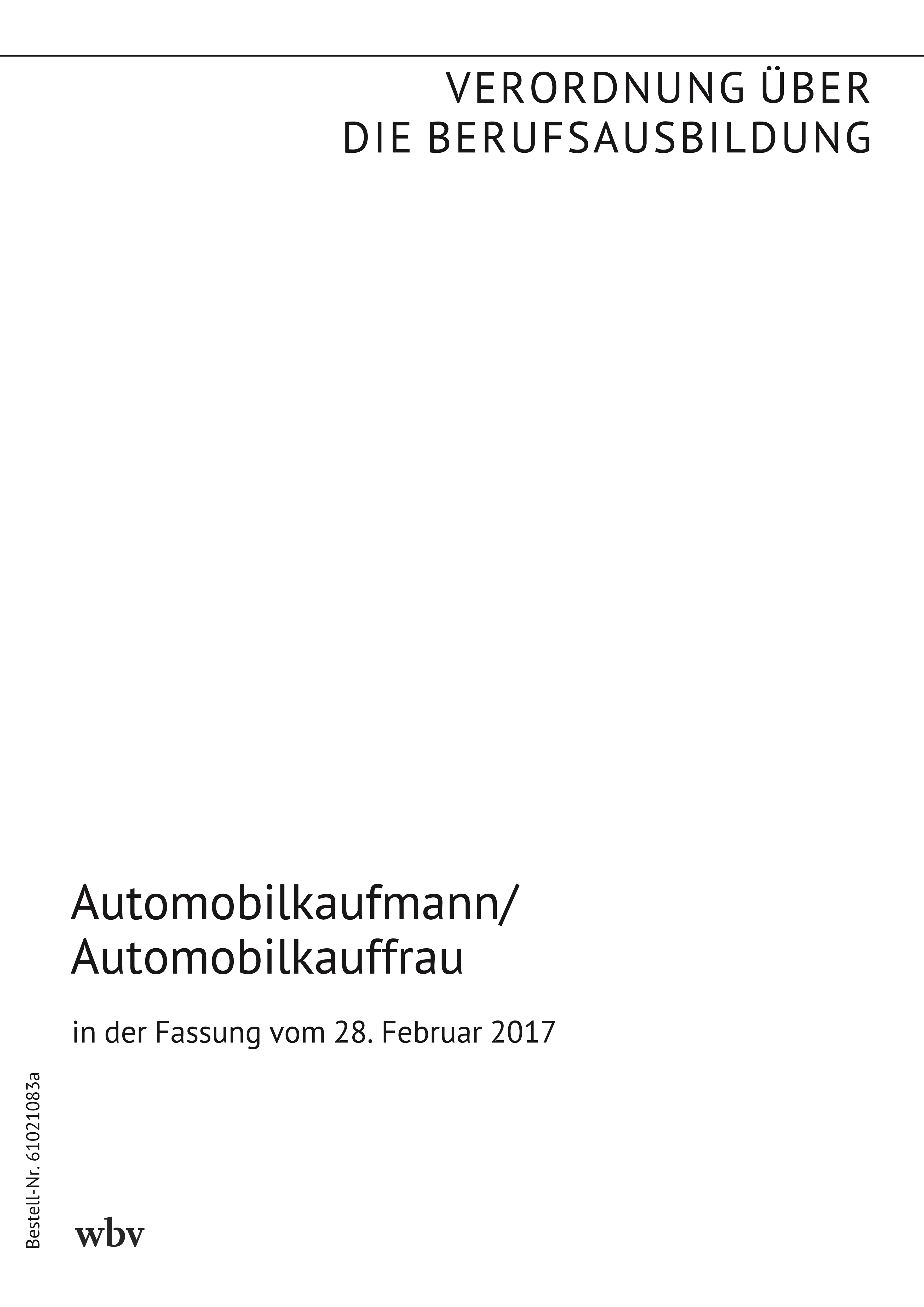 Verordnung über die Berufsausbildung zum Automobilkaufmann und zur Automobilkauffrau vom 28. Februar 2017 (BGBl. I S. 318 vom 3. März 2017)