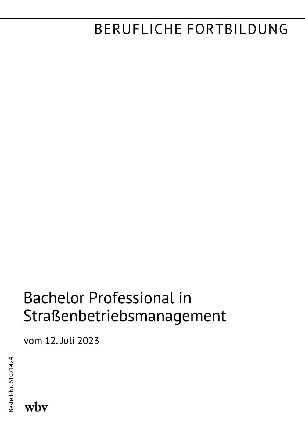Verordnung über die Prüfung zum anerkannten Fortbildungsabschluss Bachelor Professional in Straßenbetriebsmanagement vom 12. Juli 2023 (BGBl. 2023 I Nr. 187 vom 19. Juli 2023)
