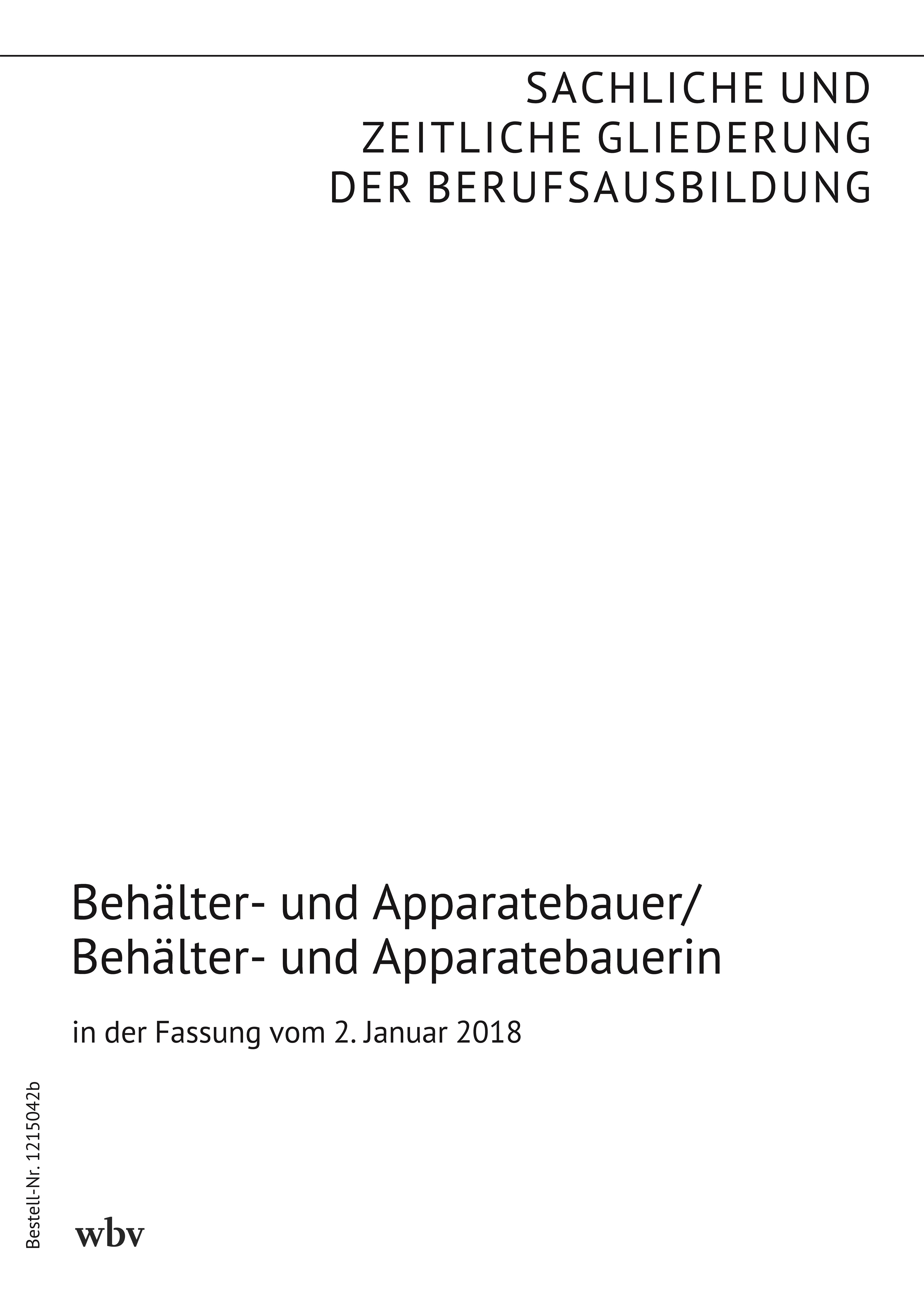 Die sachliche und zeitliche Gliederung der zu vermittelnden Kenntnisse und Fertigkeiten laut Ausbildungsrahmenplan der Ausbildungsverordnung in der Fassung vom 2. Januar 2018 ist auf den folgenden Seiten niedergelegt.