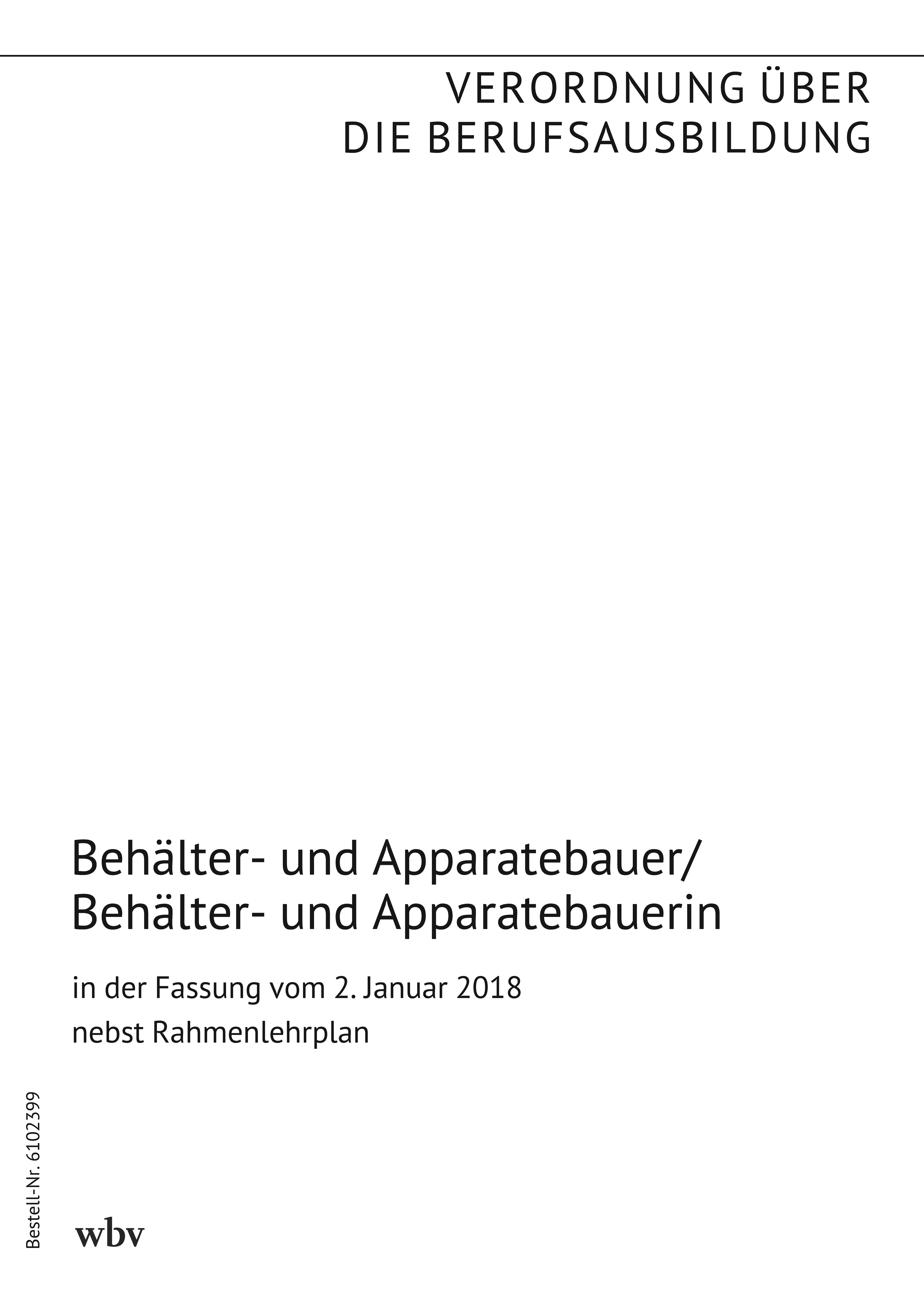 Verordnung über die Berufsausbildung zum Behälter- und Apparatebauer und zur Behälter- und Apparatebauerin vom 2. Januar 2018 (BGBl. I S. 73 vom 8. Januar 2018) nebst Rahmenlehrplan (Beschluss der Kultusministerkonferenz vom 24. November 2017)