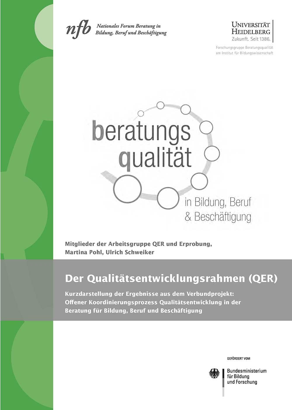 Für die Bereitstellung hochwertiger Beratungsdienstleistungen stellt eine kontinuierliche und nachhaltige Qualitätsverbesserung für Beratungsanbieter einen zentralen Baustein und gleichzeitig eine große Herausforderung dar. Im Rahmen des Projektes Beratungsqualität im Feld Bildung, Beruf und Beschäftigung wurde dafür ein allgemeiner Rahmen zur Qualitätsentwicklung (QER) entwickelt und erprobt.