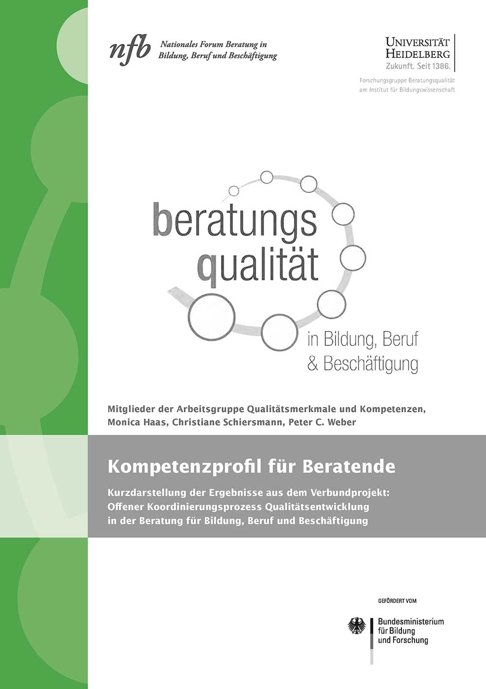 Das Kompetenzprofil für Beratung in Bildung, Beruf und Beschäftigung ist Ergebnis der Zusammenarbeit von Expertinnen und Experten aus unterschiedlichen Beratungsfeldern und der Wissenschaft im Rahmen des Offenen Koordinierungsprozesses zur Beratungsqualität. Mit dem Kompetenzprofil wird ein umfassender Katalog von Kompetenzen für eine qualitativ hochwertige Beratung vorgelegt, um die Professionalität der Beratenden zu stärken. Das Kompetenzprofil versteht sich als Rahmenmodell und muss beratungsfeldspezifisch modifiziert werden.