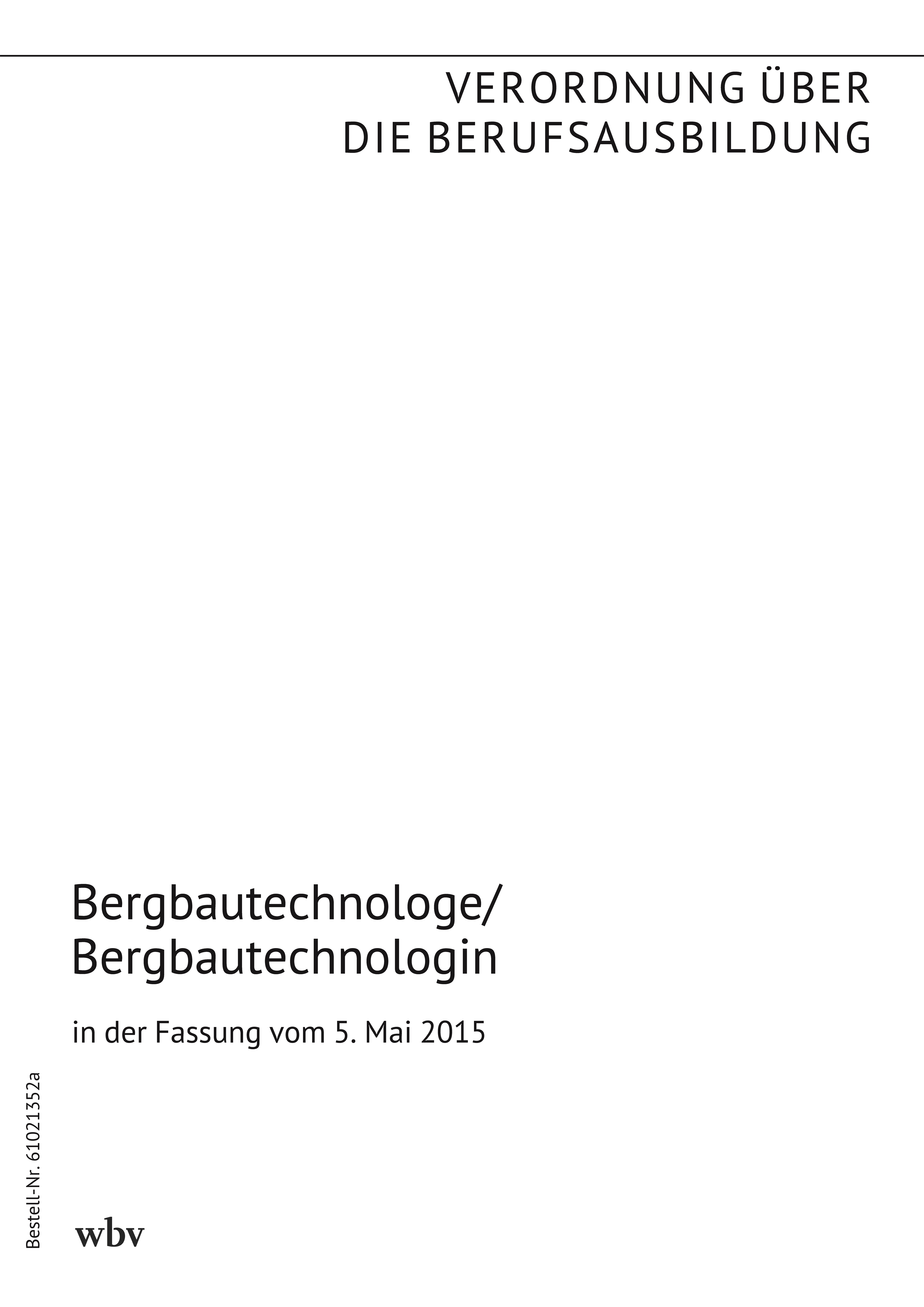 Verordnung über die Berufsausbildung zum Bergbautechnologen/zur Bergbautechnologin in der Fassung vom 5. Mai 2015 (BGBl. I S. 683 vom 18. Mai 2015)