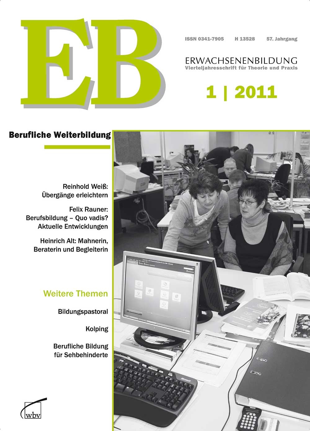 Aus dem Inhalt (u.a.): - Übergänge erleichtern - Berufsbildung - Quo vadis? - Wir brauchen ein Erwachsenen-BaföG! - Praxisforschung in der Weiterbildung - Bildungspastoral - Managementwissen und Persönlichkeitsbildung