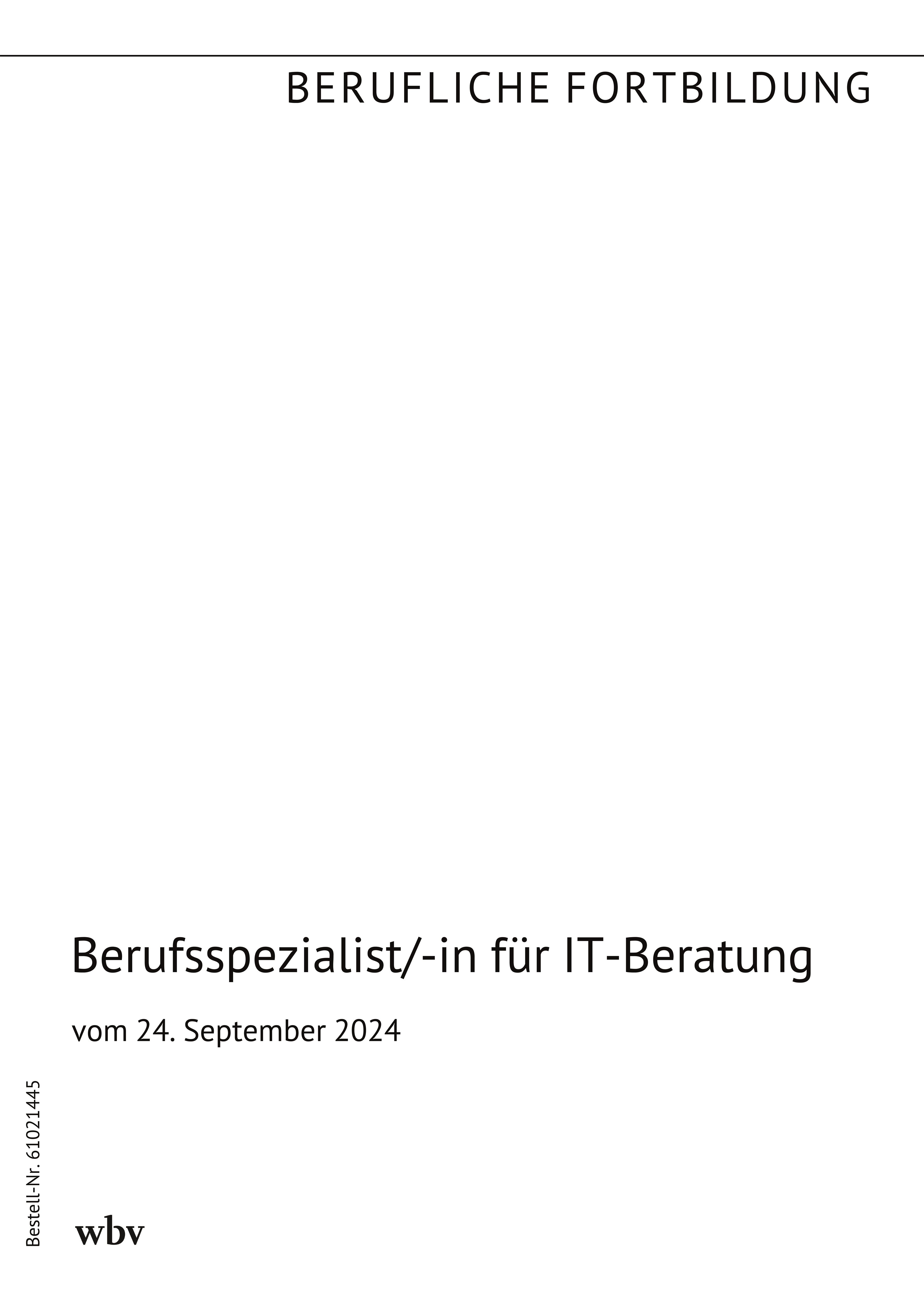 Verordnung über die Prüfung zum anerkannten Fortbildungsabschluss mit der Bezeichnung Geprüfter Berufsspezialist für IT-Beratung oder Geprüfte Berufsspezialistin für IT-Beratung (IT-Beratung-Fortbildungsprüfungsverordnung - ITBFPrV), veröffentlicht in der Verordnung zur Neuordnung der Fortbildungsprüfungen der Geprüften Berufsspezialisten und der Geprüften Berufsspezialistinnen im Bereich der Informations- und Telekommunikationstechnik (BGBl. I Nr. 296 vom 2. Oktober 2024)
