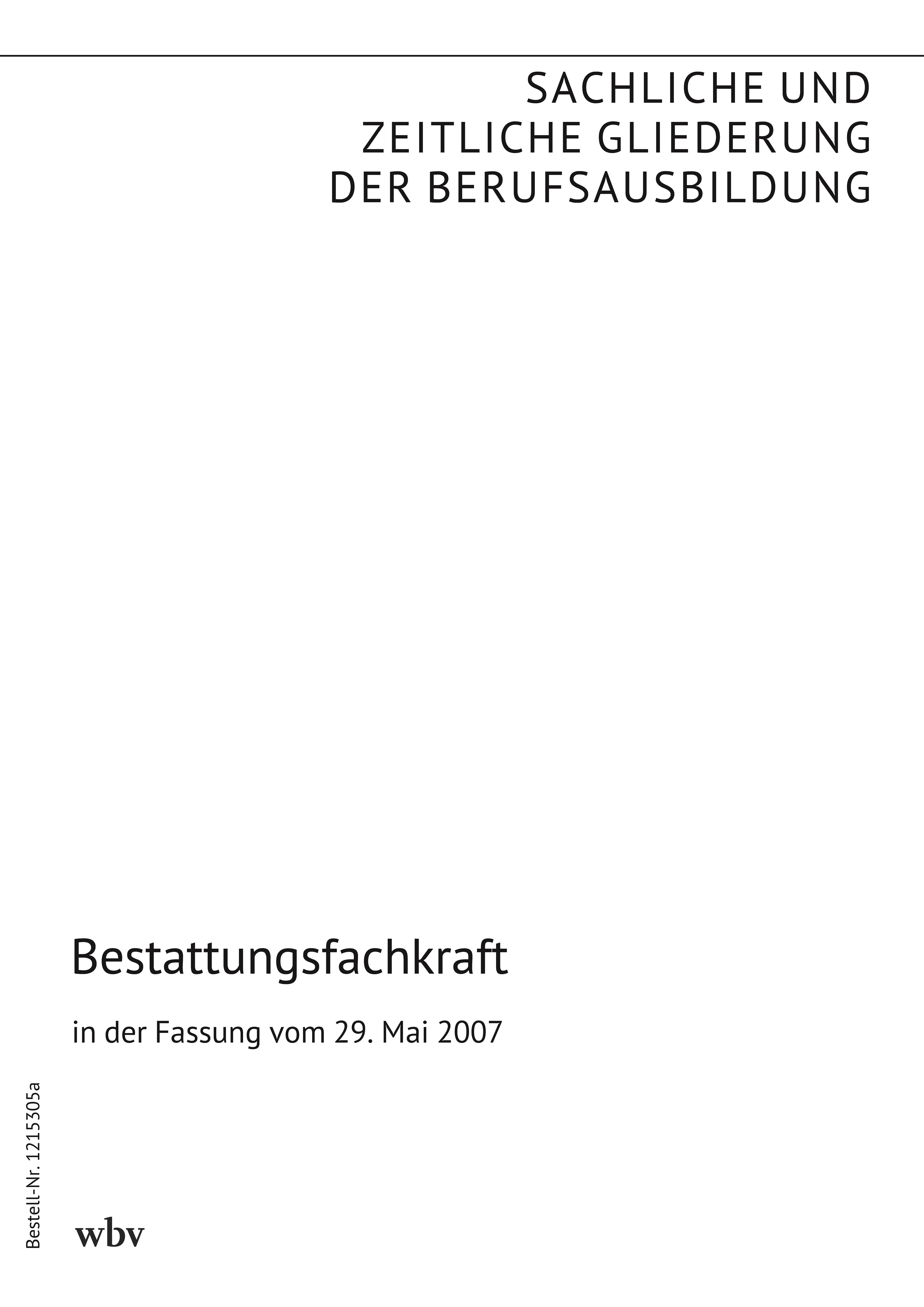 Die sachliche und zeitliche Gliederung der zu vermittelnden Kenntnisse und Fertigkeiten laut Ausbildungsrahmenplan der Ausbildungsverordnung in der Fassung vom 29. Mai 2007 ist auf den folgenden Seiten niedergelegt.