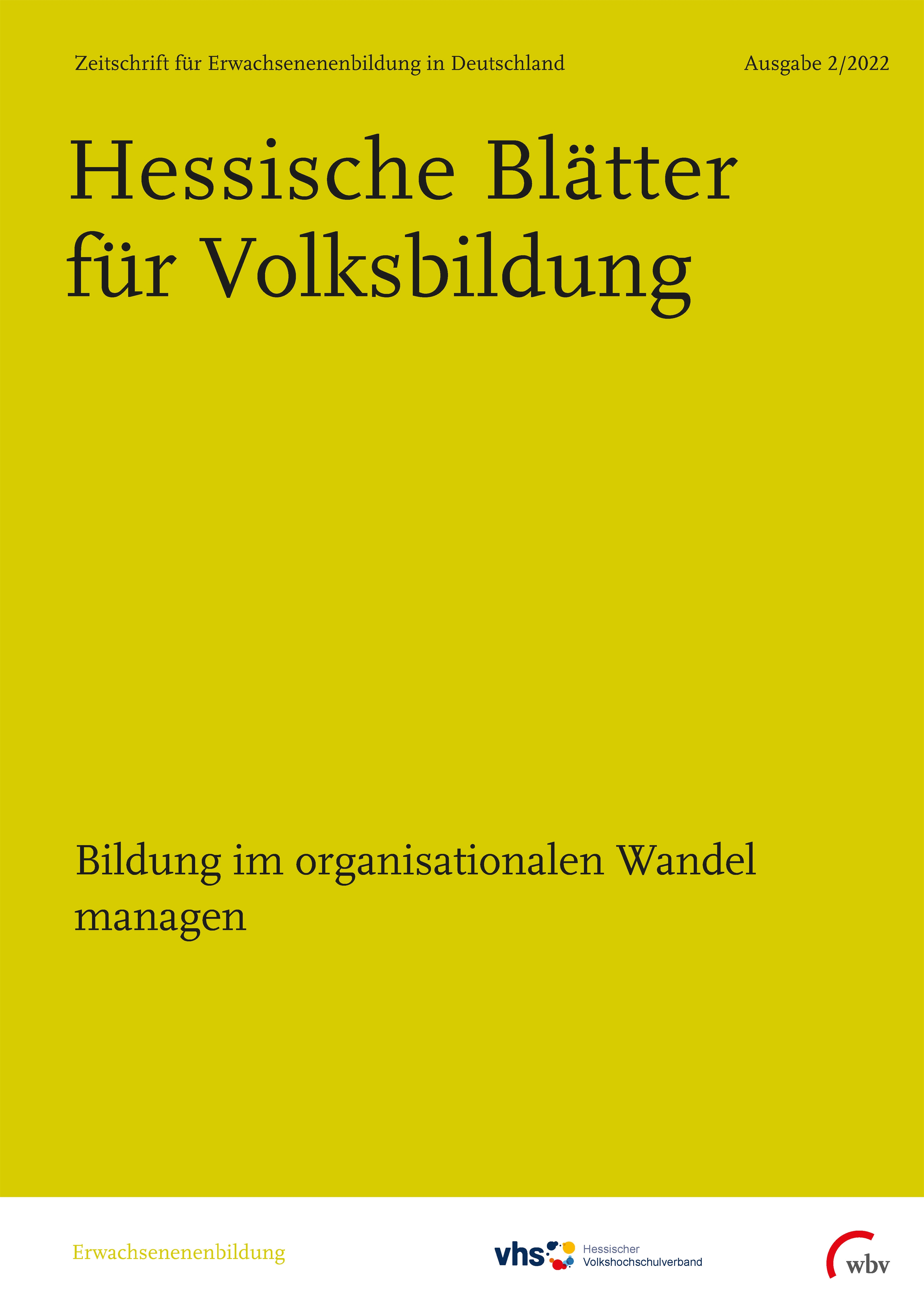 Hessischer Volkshochschulverband (Hrsg.) (2022). Bildung im organisationalen Wandel managen. Hessische Blätter für Volksbildung. 72(2). Bielefeld: wbv Publikation. https://doi.org/10.3278/HBV2202W