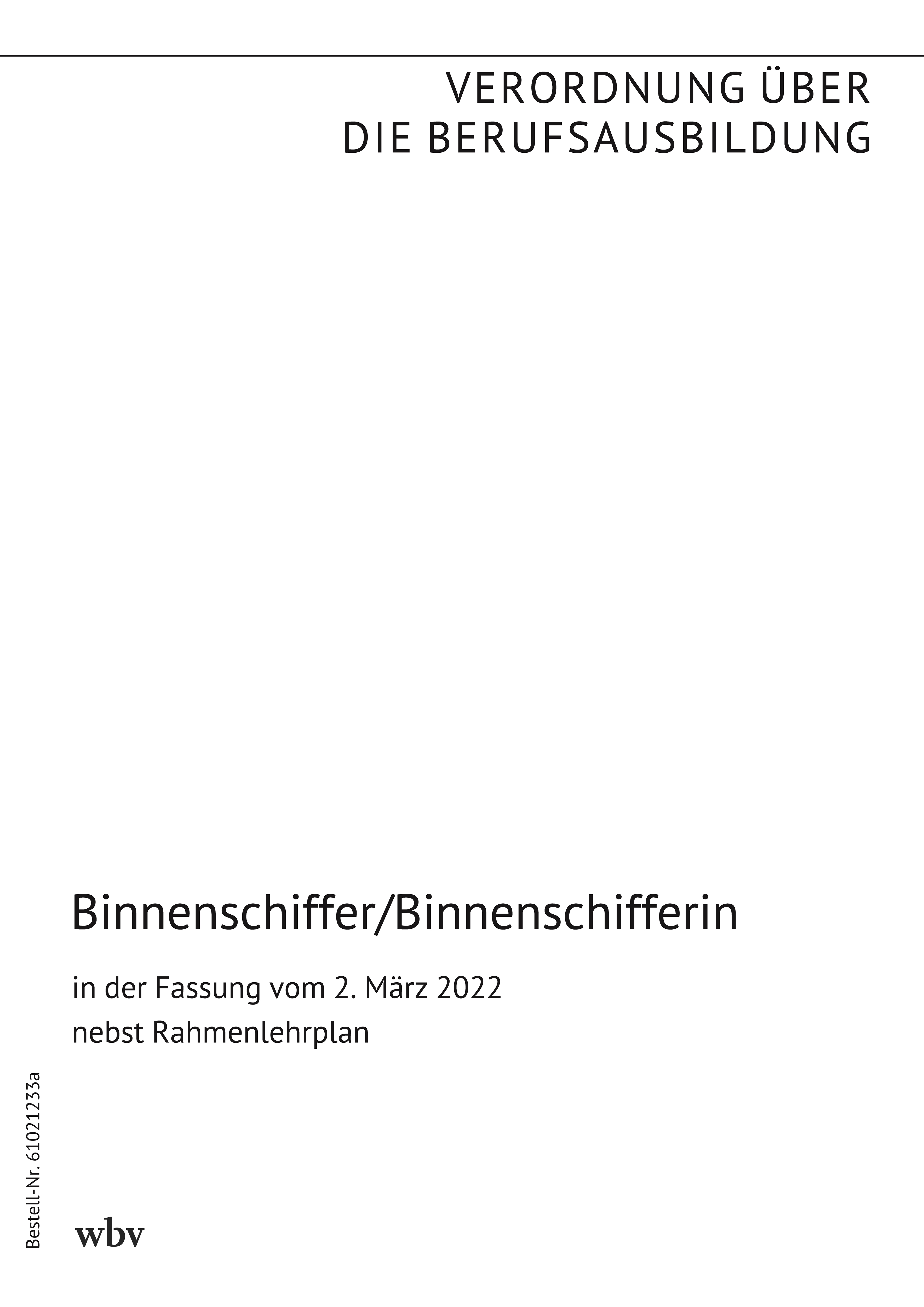 Verordnung über die Berufsausbildung zum Binnenschiffer und zur Binnenschifferin vom 2. März 2022 (BGBI. I S. 257) nebst Rahmenlehrplan (Beschluss der Kultusministerkonferenz vom 17. Dezember 2021)