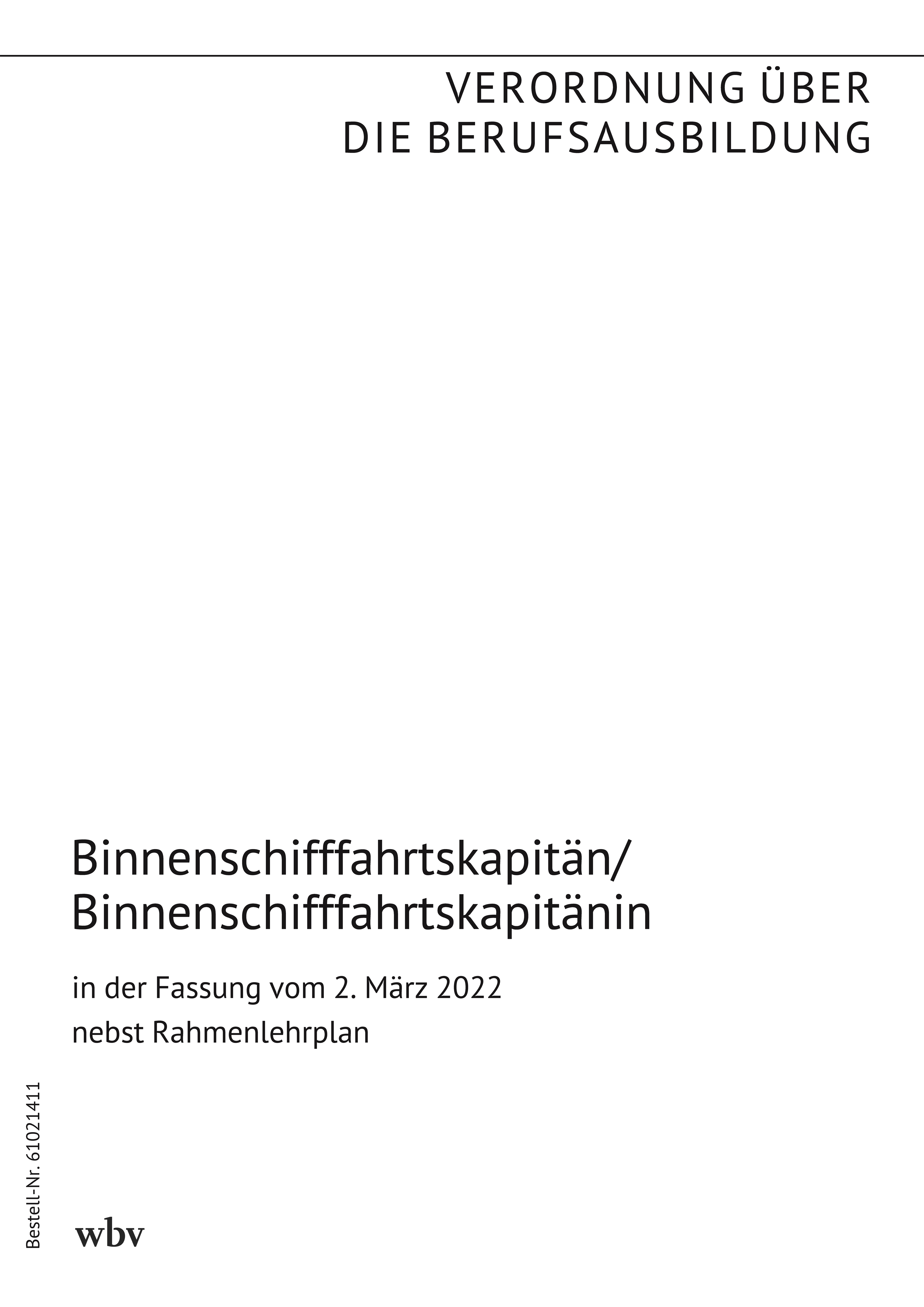 Verordnung über die Berufsausbildung zum Binnenschifffahrtskapitän und zur Binnenschifffahrtskapitänin vom 2. März 2022 (BGBl. I S. 271) nebst Rahmenlehrplan (Beschluss der Kultusministerkonferenz vom 17. Dezember 2021)