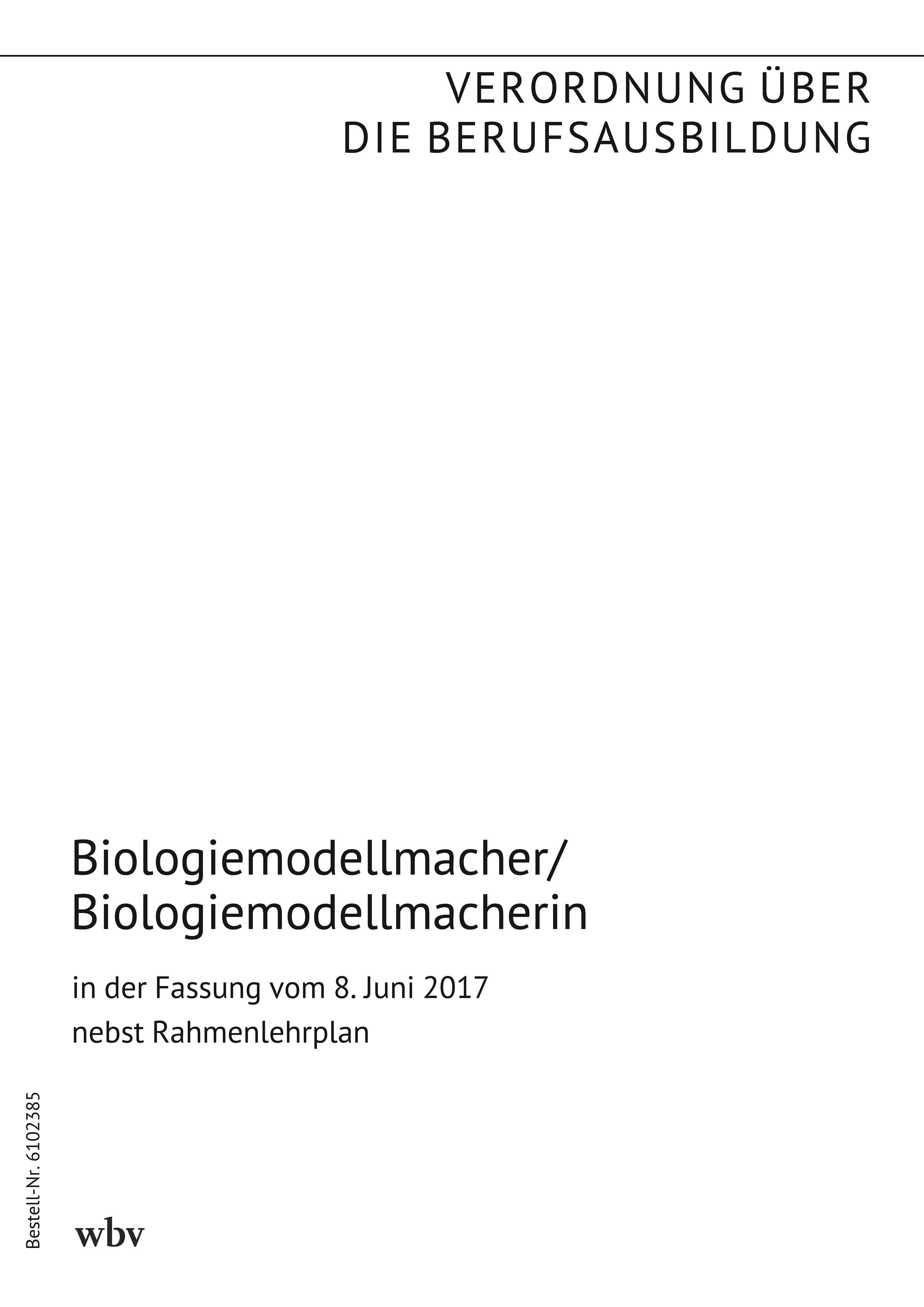 Verordnung über die Berufsausbildung zum Biologiemodellmacher und zur Biologiemodellmacherin vom 8. Juni 2017 (BGBl. I S. 1550 vom 13. Juni 2017) nebst Rahmenlehrplan (Beschluss der Kultusministerkonferenz vom 30. März 2017)