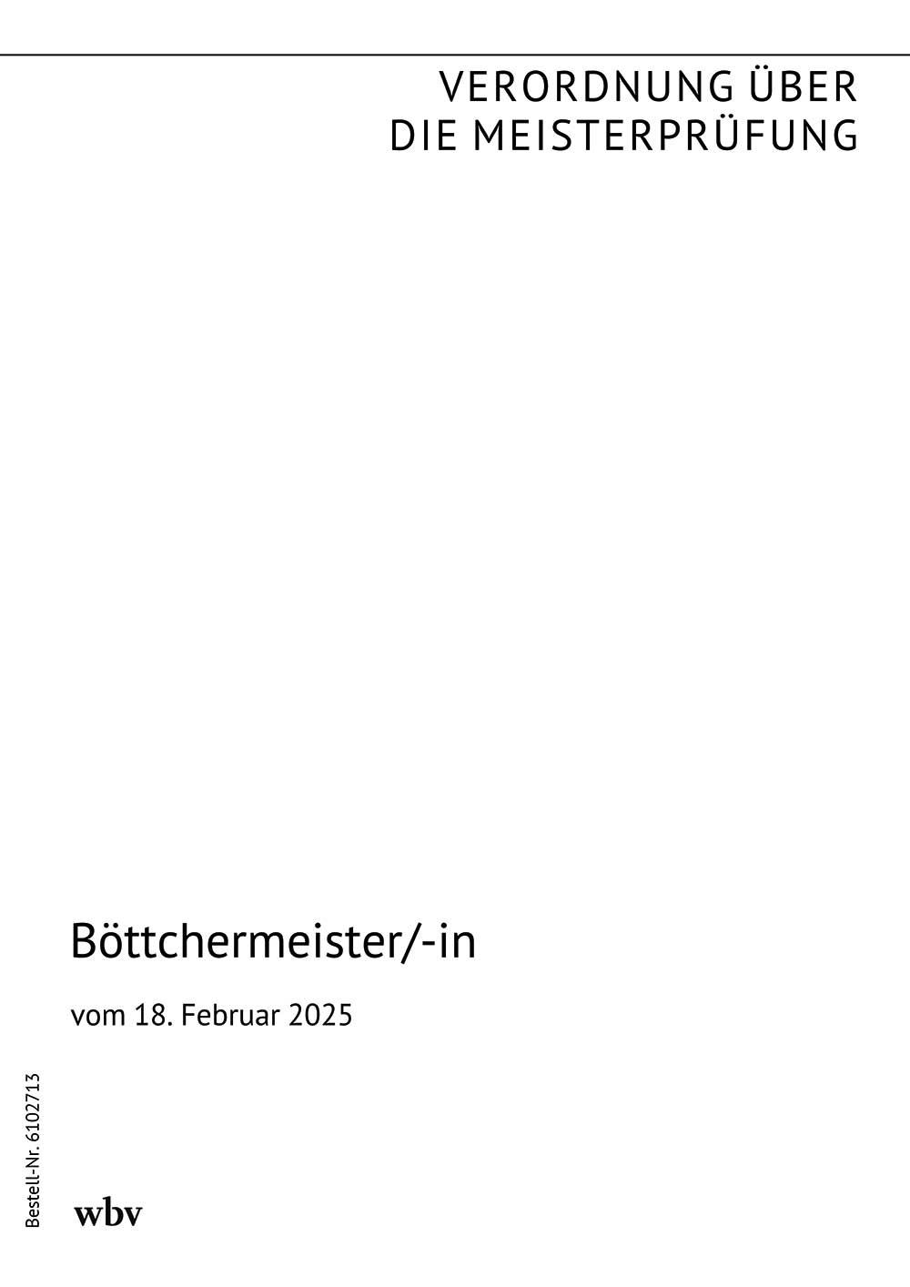 Verordnung über die Meisterprüfung in den Teilen I und II im Böttcher-Handwerk (Böttchermeisterverordnung - BöttchMstrV), veröffentlicht im BGBl. Nr. 45 vom 24.02.2025