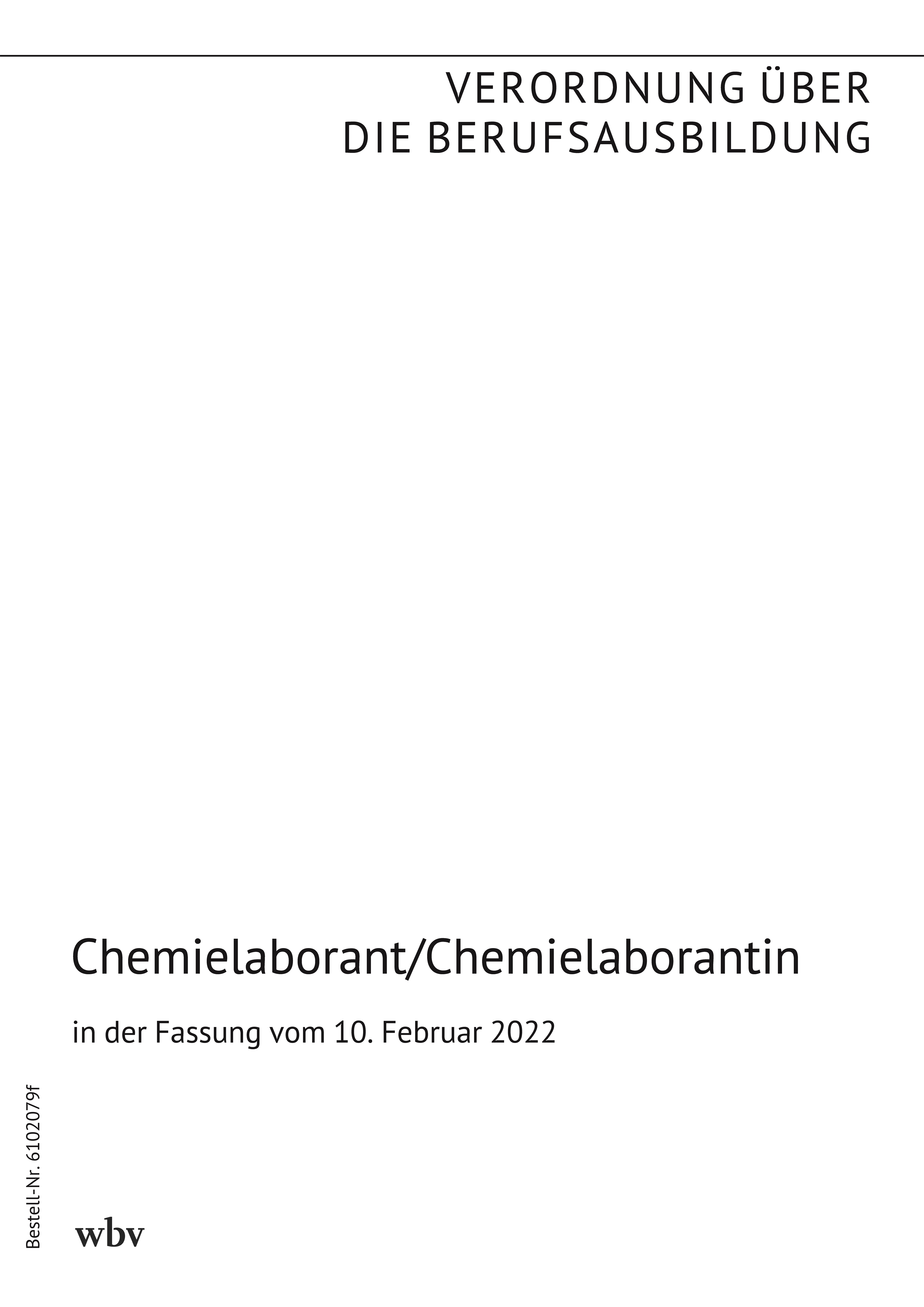 Verordnung über die Berufsausbildung im Laborbereich Chemie, Biologie und Lack vom 25. Juni 2009 (BGBl. I S. 1600), zuletzt geändert durch die Verordnung vom 10. Februar 2022 (BGBl. I S. 174) (Auszug für den Beruf Chemielaborant/Chemielaborantin)