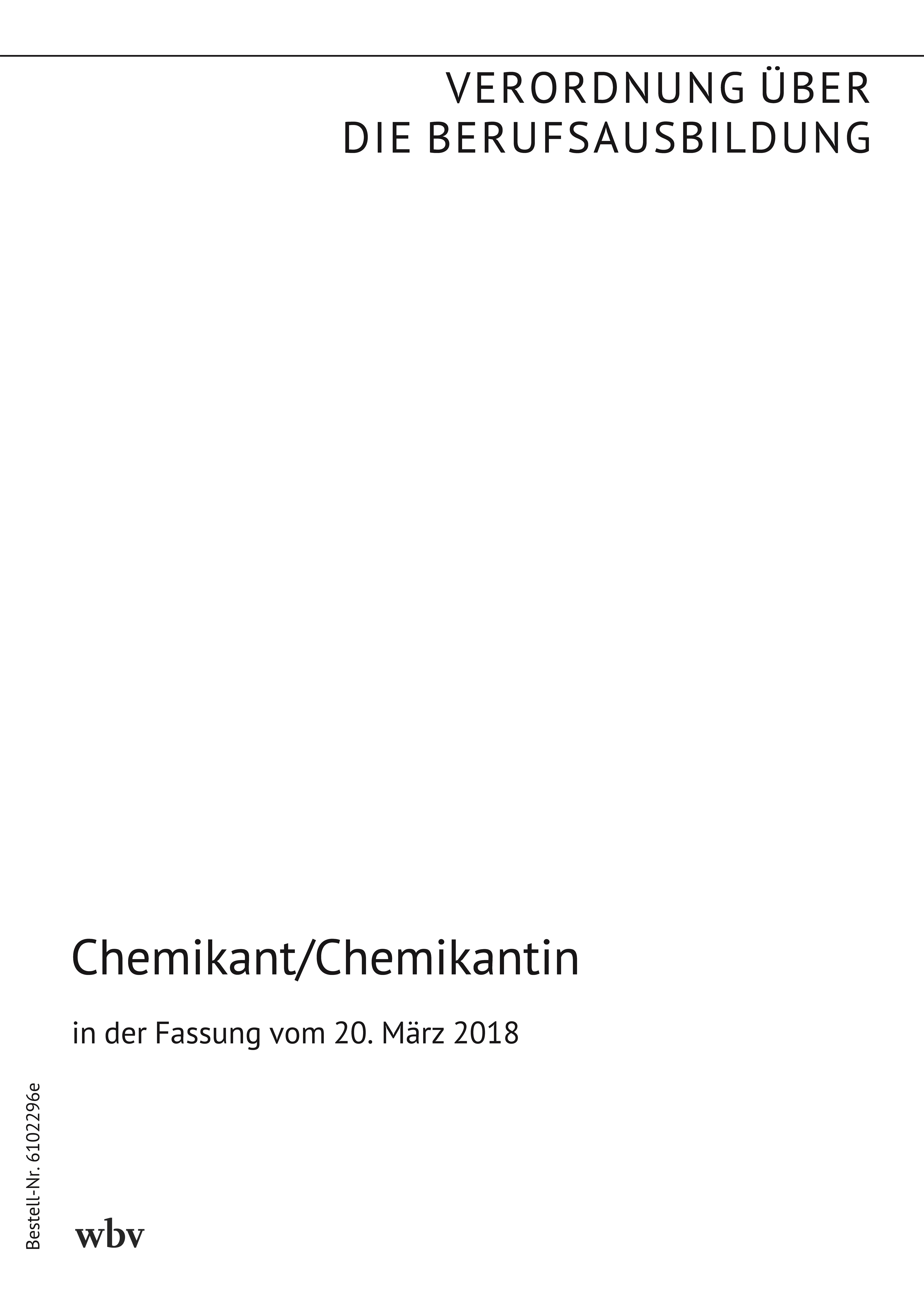 Verordnung über die Berufsausbildung zum Chemikanten/zur Chemikantin vom 10. Juni 2009 (BGBl. I S. 1360 vom 24. Juni 2009), zuletzt geändert durch die Verordnung vom 20. März 2018 (BGBl. I S. 382 vom 29. März 2018)