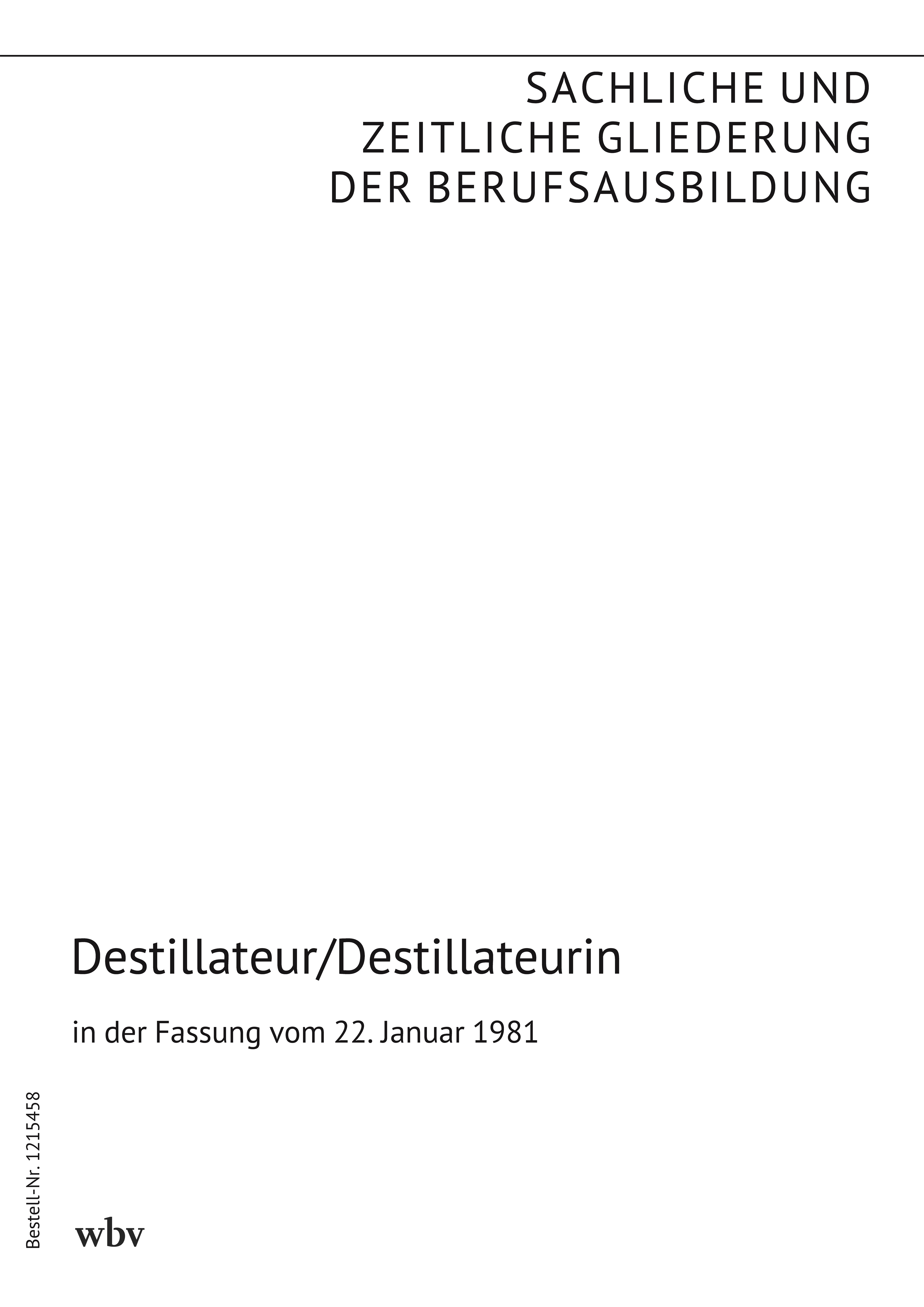 Die sachliche und zeitliche Gliederung der zu vermittelnden Kenntnisse und Fertigkeiten laut Ausbildungsrahmenplan der Ausbildungsverordnung in der Fassung vom 22. Januar 1981 ist auf den folgenden Seiten niedergelegt.