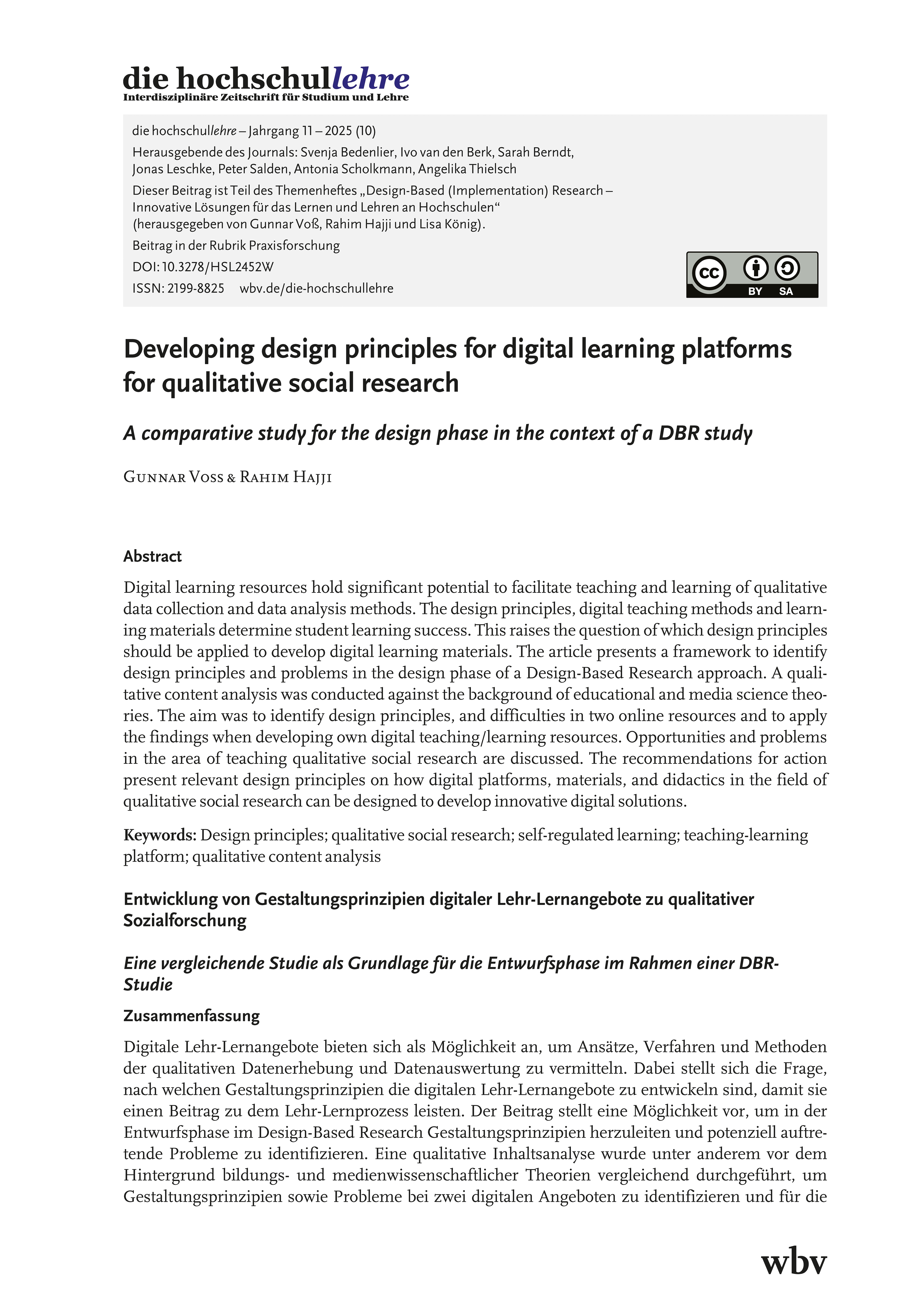Voß, G. & Hajji, R. (2025). Developing design principles for digital learning platforms for qualitative social research. die hochschullehre, Jahrgang 11/2025. DOI: 10.3278/HSL2452W.