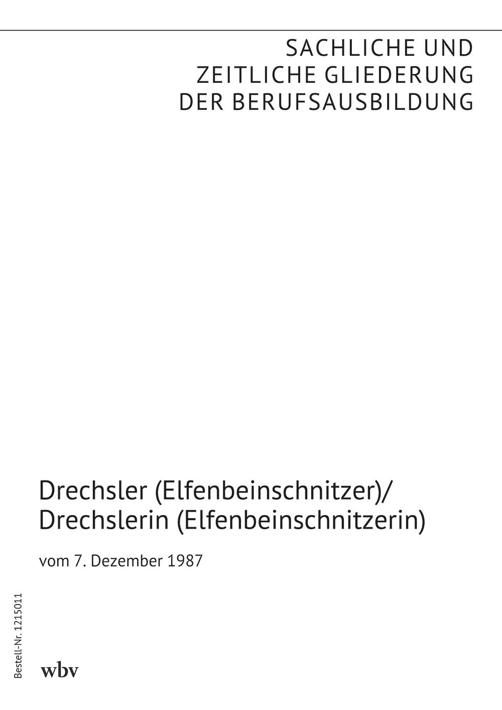 Die sachliche und zeitliche Gliederung der zu vermittelnden Kenntnisse und Fertigkeiten laut Ausbildungsrahmenplan der Ausbildungsverordnung vom 7. Dezember 1987 ist auf den folgenden Seiten niedergelegt.