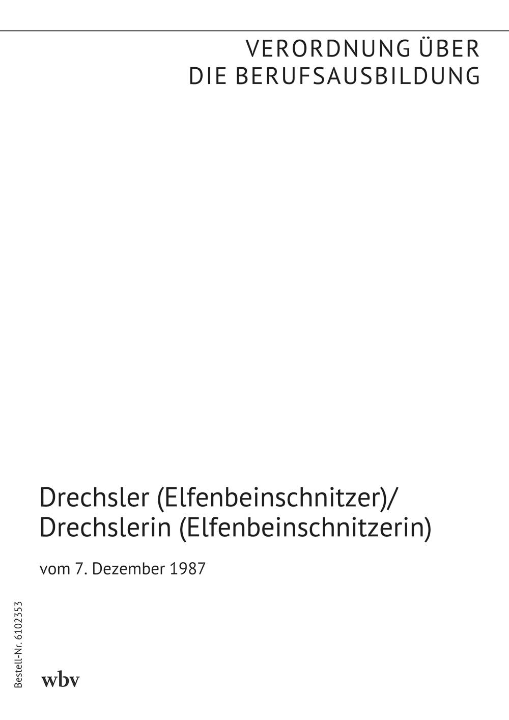 Verordnung über die Berufsausbildung zum Drechsler (Elfenbeinschnitzer)/zur Drechslerin (Elfenbeinschnitzerin) (Drechsler-Ausbildungsverordnung - DrechslAusbV) vom 7. Dezember 1987 (BGBl. I S. 2521 vom 15. Dezember 1987)