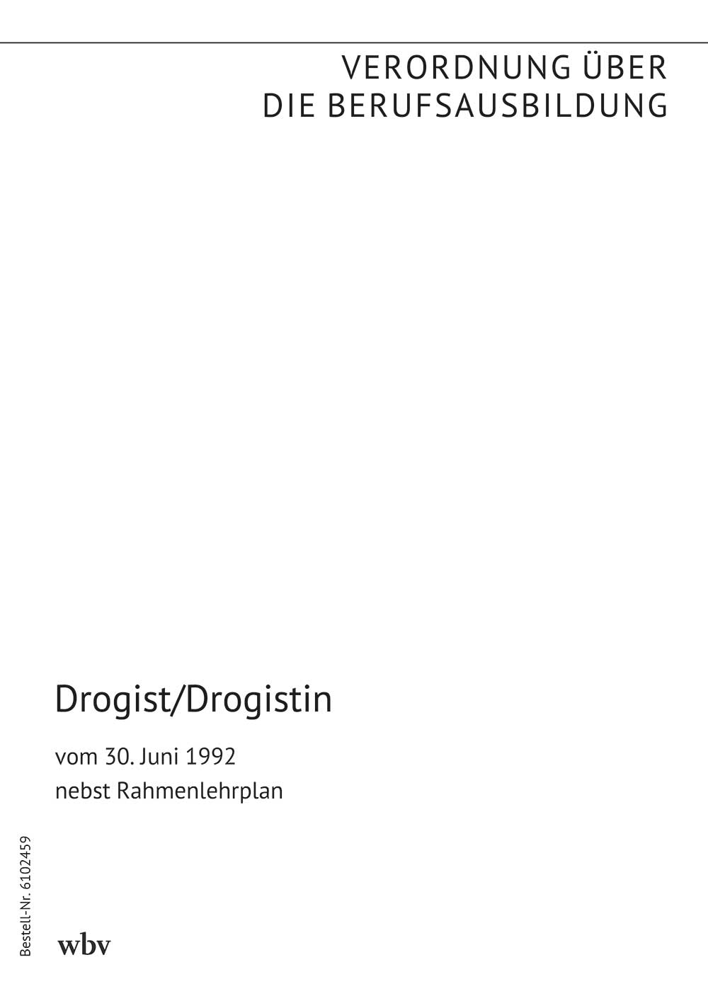 Verordnung über die Berufsausbildung zum Drogist/zur Drogistin vom 30. Juni 1992 (BGBl. I S. 1197 vom 9. Juli 1992) nebst Rahmenlehrplan für den Ausbildungsberuf Drogist/Drogistin (Beschluß der Kultusministerkonferenz vom 19. März 1992, Beilage zum Bundesanzeiger Nr. 187 vom 6. Oktober 1992)