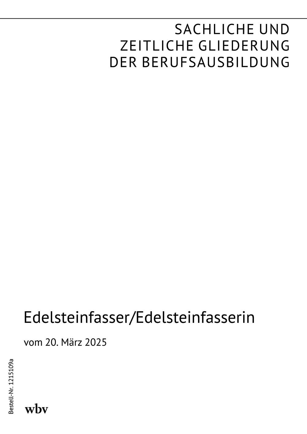 Die Sachlich und Zeitliche Gliederung der Verordnung über die Berufsausbildung zum Edelsteinfasser und zur Edelsteinfasserin (Edelsteinfasser-Ausbildungsverordnung - EdlStFAusbV), geändert durch die Verordnung zur Neuordnung der Ausbildung der Berufe für Schmuck und Gerät im BGBI Nr. 93 vom 20. März 2025