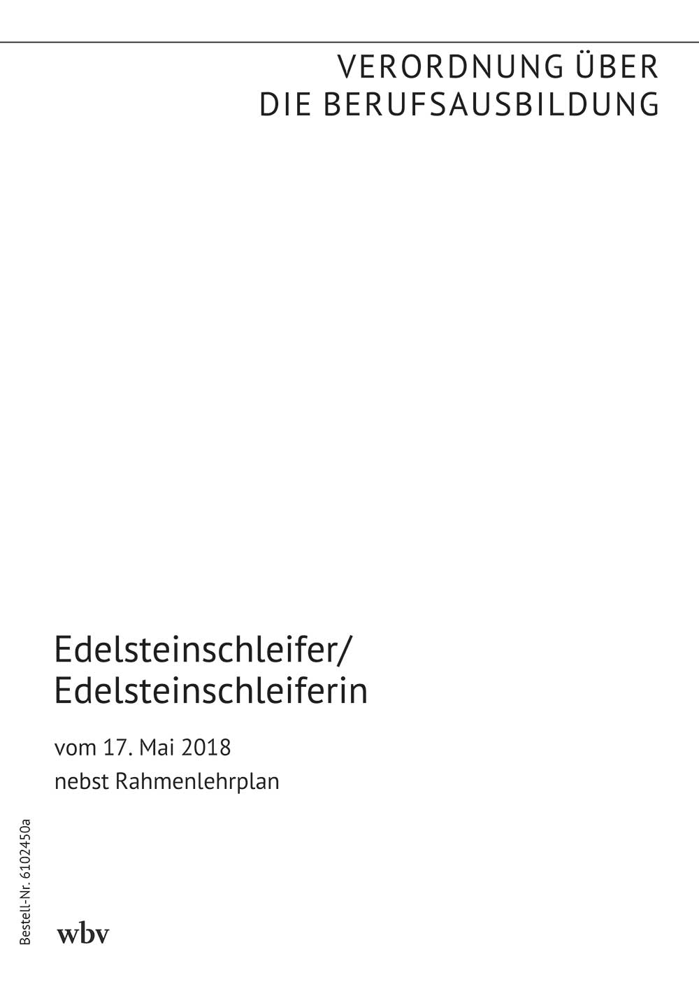Verordnung über die Berufsausbildung zum Edelsteinschleifer und zur Edelsteinschleiferin vom 17. Mai 2018 (BGBl. I S. 636 vom 25. Mai 2018) nebst Rahmenlehrplan (Beschluss der Kultusministerkonferenz vom 23. Februar 2018)