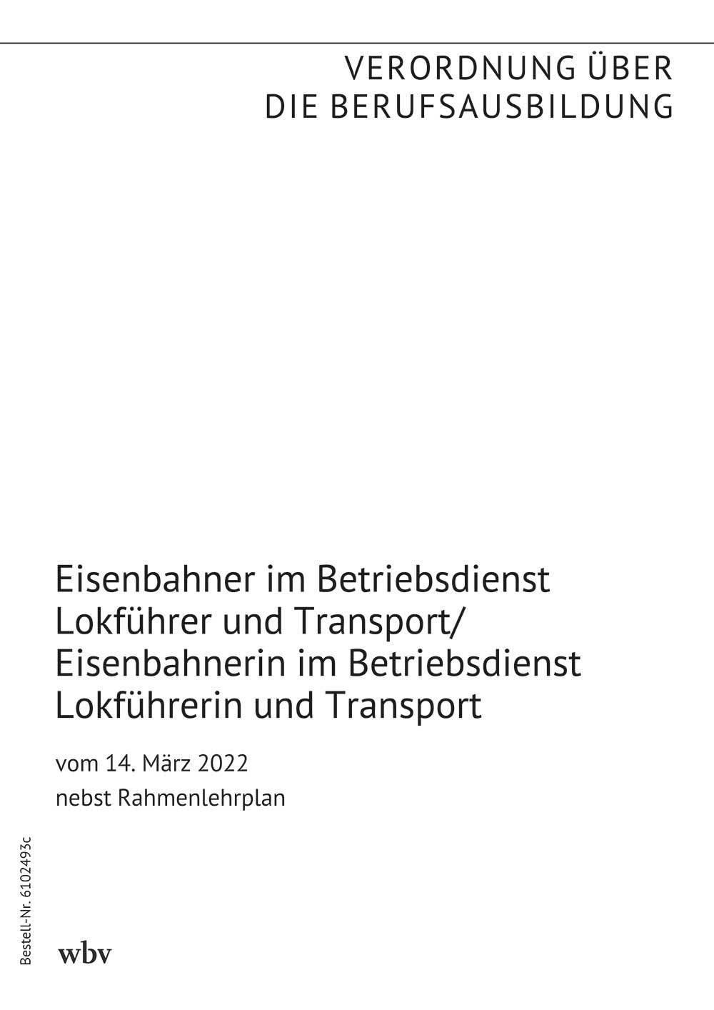 Verordnung über die Berufsausbildung zum Eisenbahner im Betriebsdienst Lokführer und Transport und zur Eisenbahnerin im Betriebsdienst Lokführerin und Transport*) vom 14. März 2022 (BGBl. I S. 433) nebst Rahmenlehrplan (Beschluss der Kultusministerkonferenz vom 17. Dezember 2021)