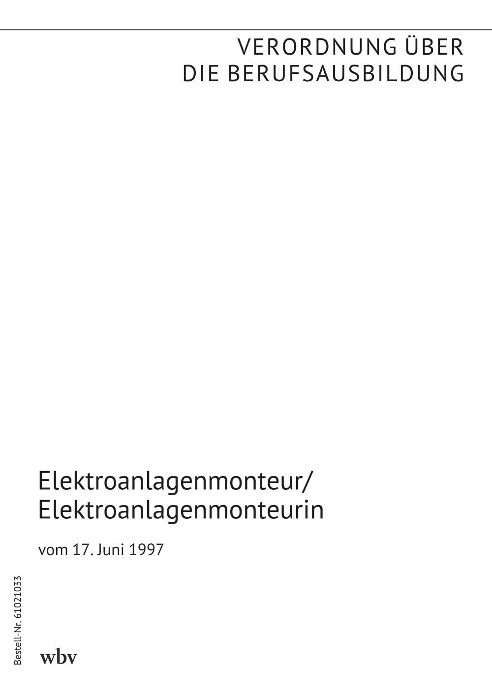 Verordnung über die Berufsausbildung zum Elektroanlagenmonteur/zur Elektroanlagenmonteurin vom 17. Juni 1997 (BGBl. I S. 1362 vom 23. Juni 1997)
