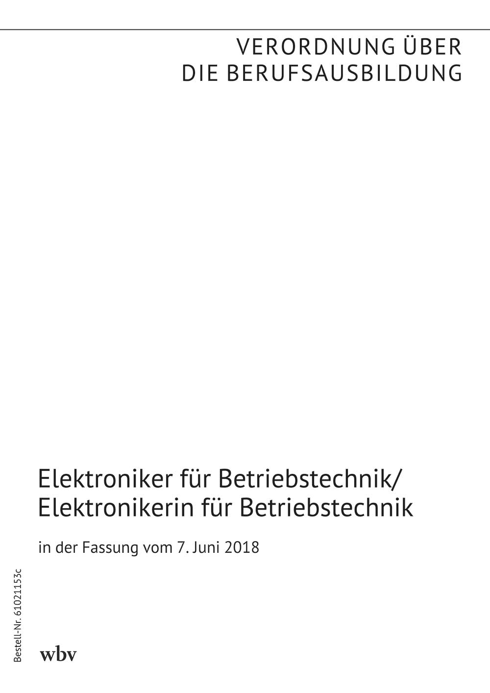 Verordnung über die Berufsausbildung in den industriellen Elektroberufen - Elektroniker für Betriebstechnik/Elektronikerin für Betriebstechnik vom 24. Juli 2007 (BGBl. I S. 1678 vom 30. Juli 2007), zuletzt geändert durch die Verordnung vom 7. Juni 2018 (BGBl. I S. 678 vom 13. Juni 2018)