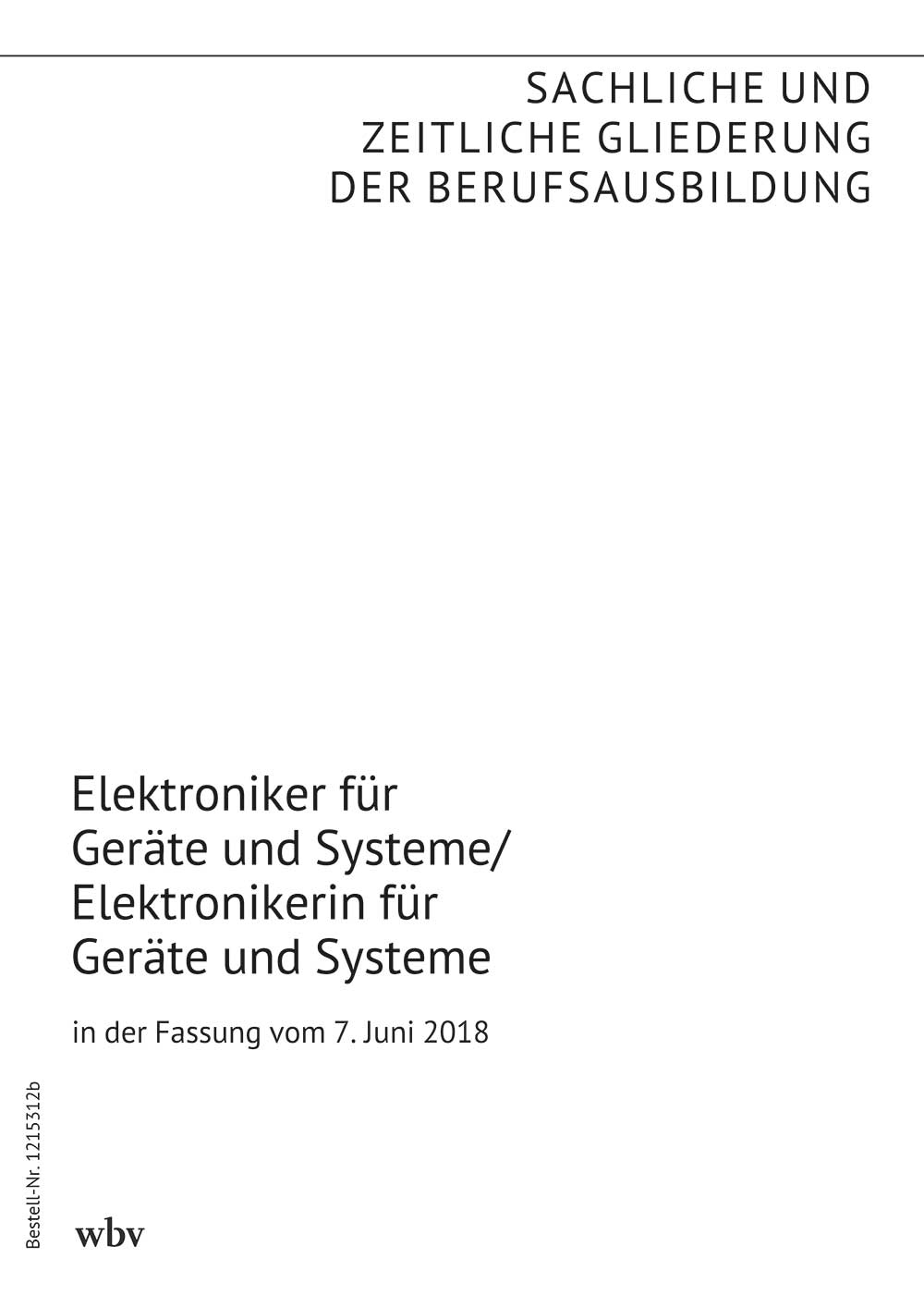 Die sachliche und zeitliche Gliederung der zu vermittelnden Kenntnisse und Fertigkeiten laut Ausbildungsrahmenplan der Ausbildungsverordnung in der Fassung vom 7. Juni 2018.