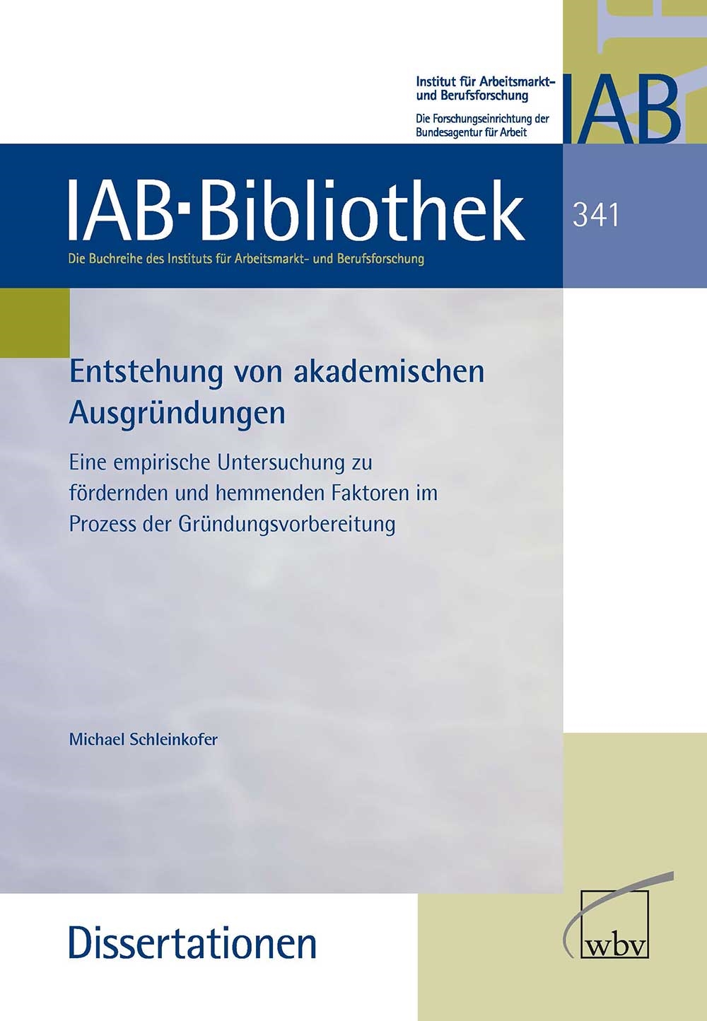 Im Band "Entstehung von akademischen Ausgründungen" untersucht Michael Schleinkofer fördernde und hemmende Faktoren in der Gründungsvorbereitung von akademischen Ausgründungen, sogenannten Spin-offs. Die empirische Studie, die vom Institut für Arbeitsmarkt- und Berufsforschung (IAB) herausgeben wird, schließt eine Forschungslücke in der Gründungsforschung.