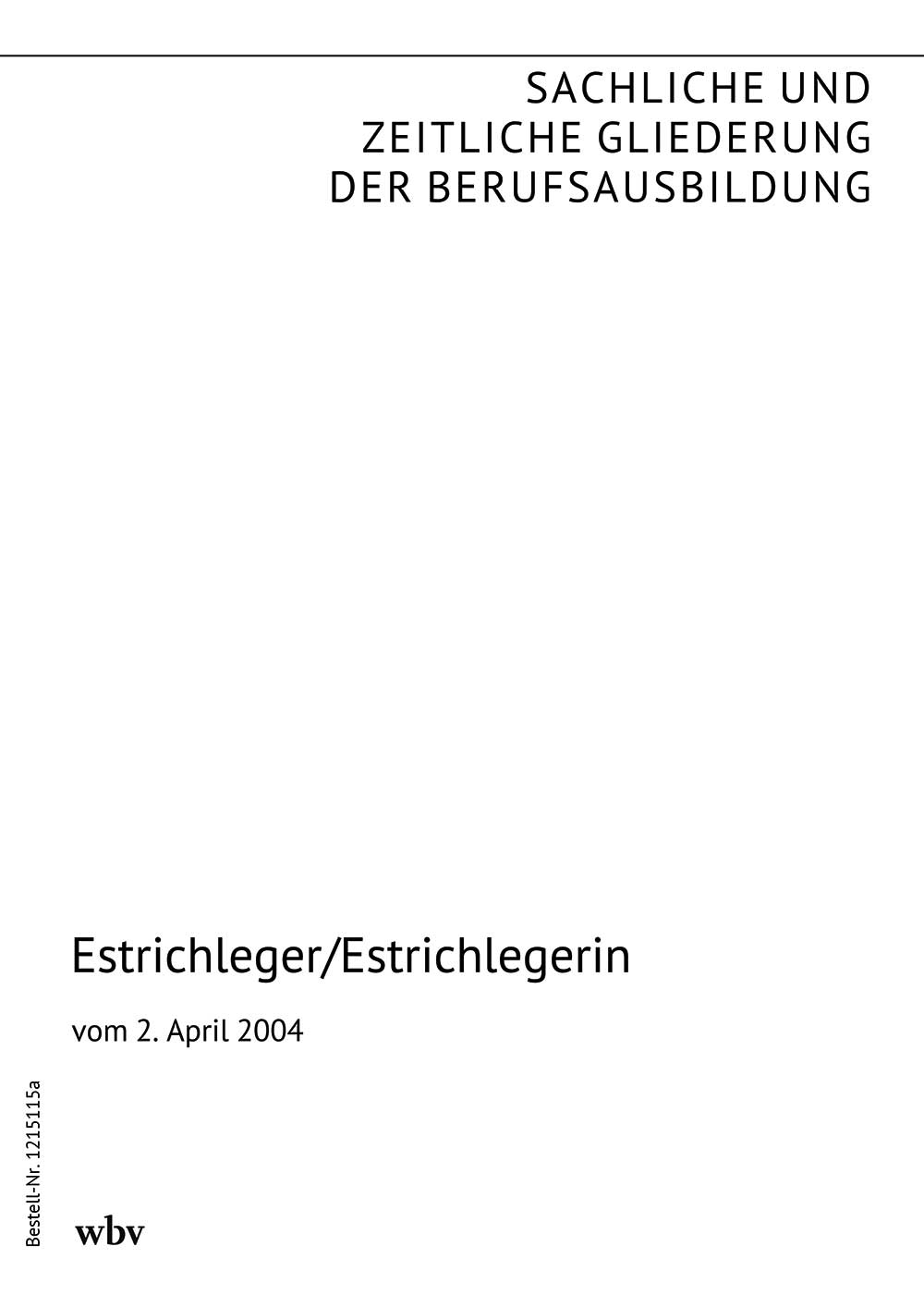 Die sachliche und zeitliche Gliederung der zu vermittelnden Kenntnisse und Fertigkeiten laut Ausbildungsrahmenplan der Ausbildungsverordnung vom 2. April 2004