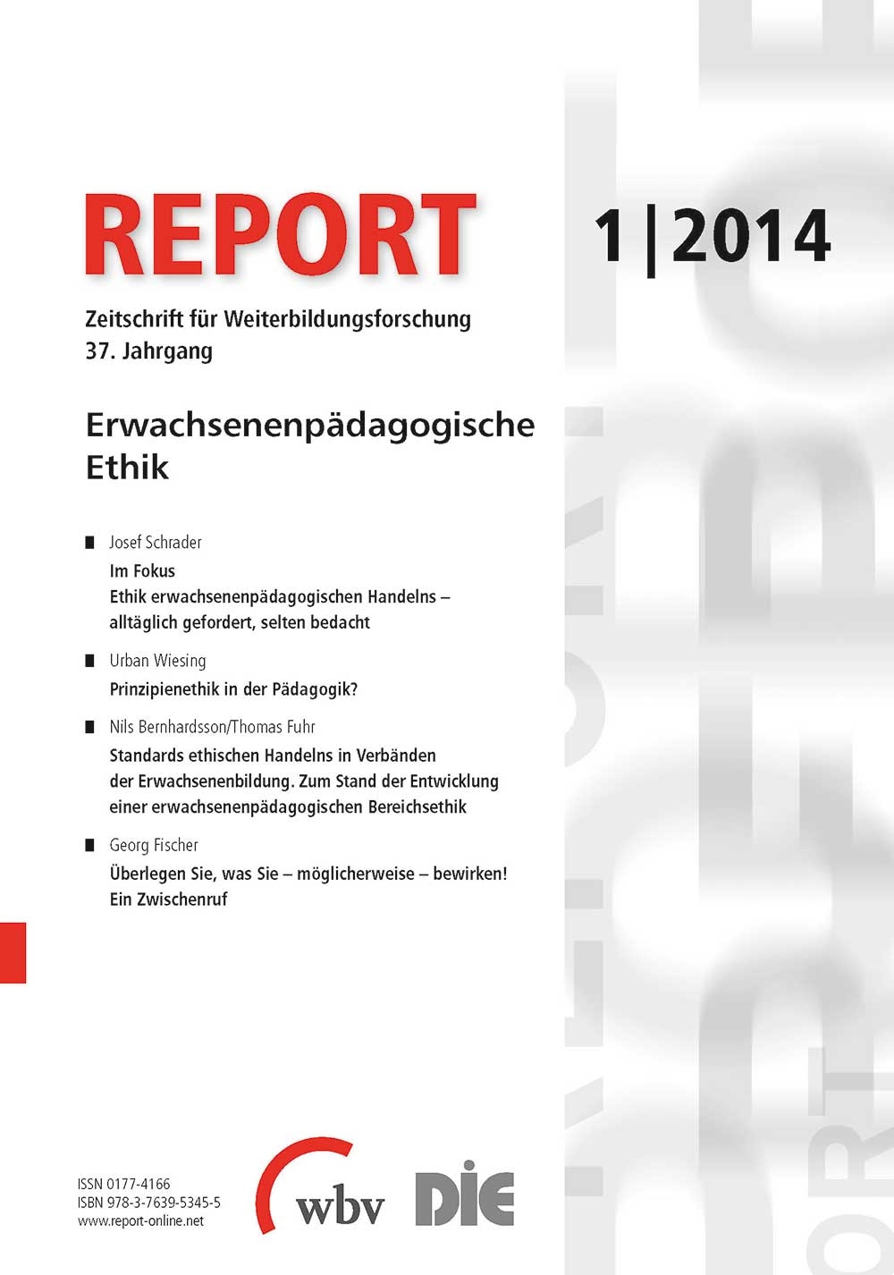Standards ethischen Handelns in Verbänden der Erwachsenenbildung. Zum Stand der Entwicklung einer erwachsenenpädagogischen Bereichsethik