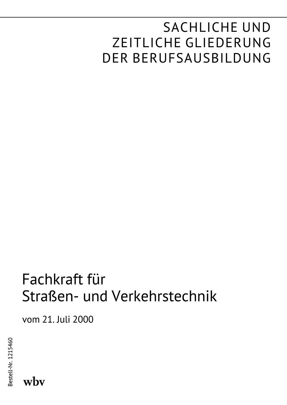 Die sachliche und zeitliche Gliederung der zu vermittelnden Kenntnisse und Fertigkeiten laut Ausbildungsrahmenplan der Ausbildungsverordnung vom 21. Juli 2000.