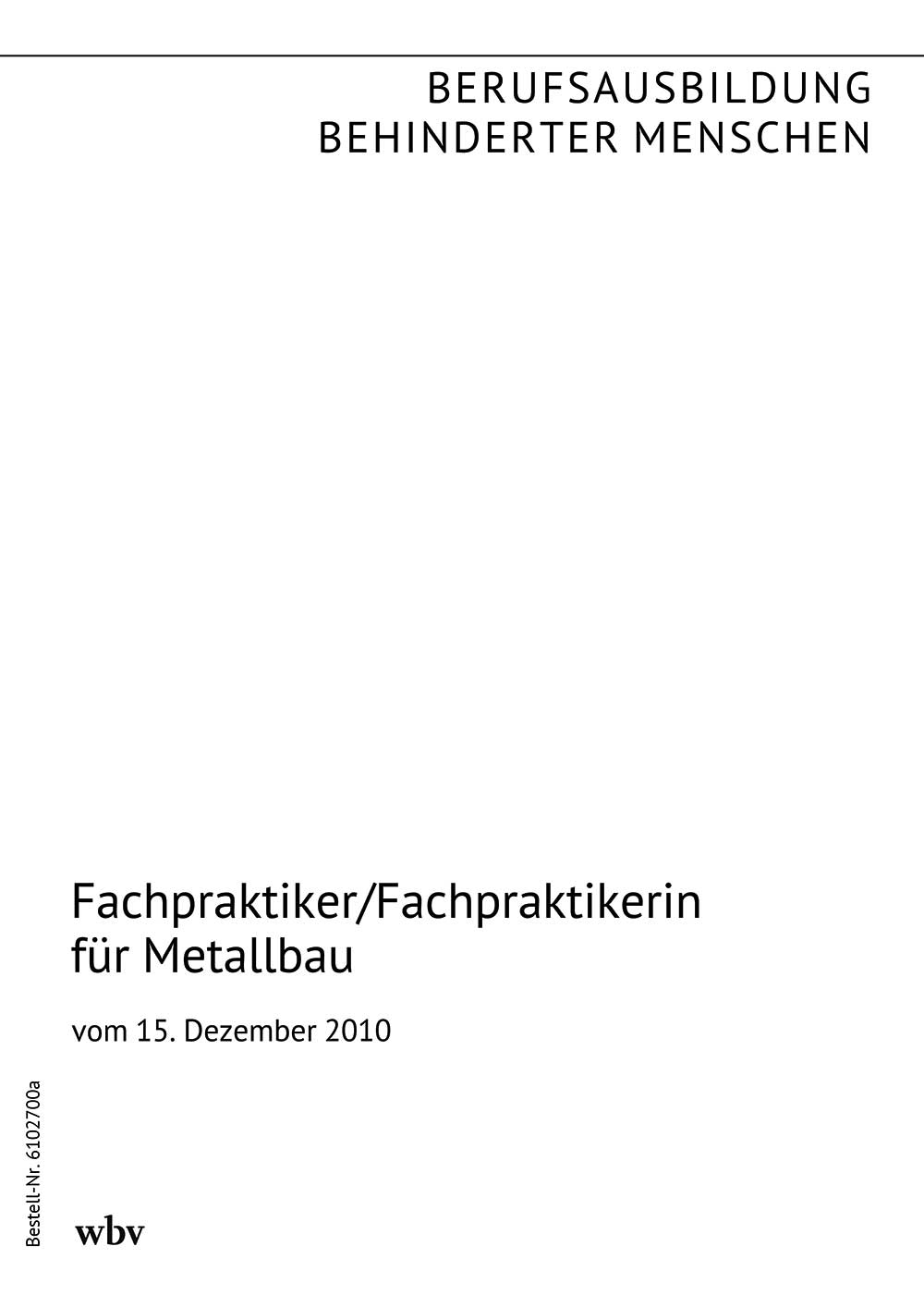Empfehlung für eine Ausbildungsregelung Fachpraktiker für Metallbau/Fachpraktikerin für Metallbau gemäß § 66 BBiG/§ 42 m HwO vom 15. Dezember 2010 (Bundesanzeiger Nr. 120)