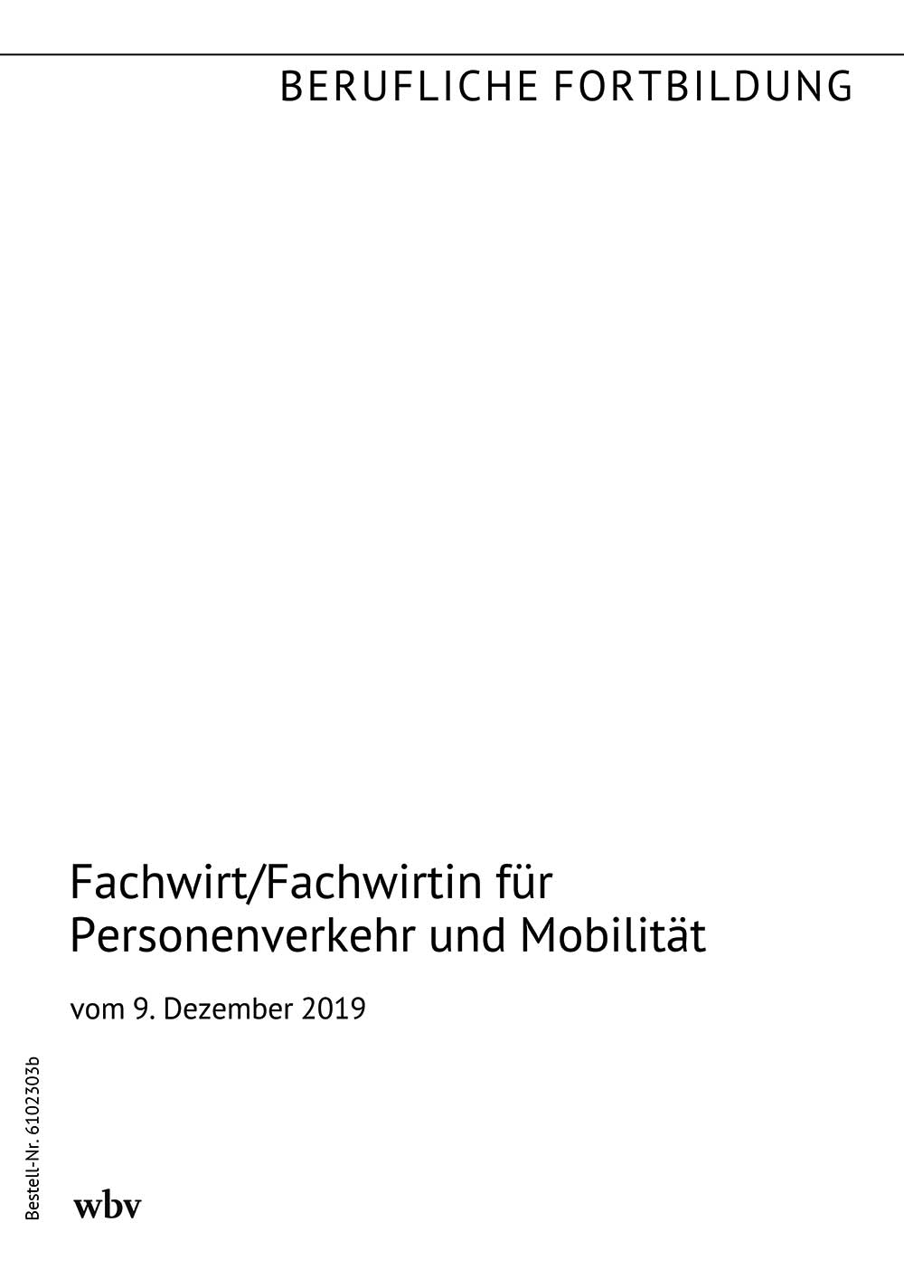 Verordnung über die Prüfung zum anerkannten Fortbildungsabschluss Geprüfter Fachwirt für Personenverkehr und Mobilität/Geprüfte Fachwirtin für Personenverkehr und Mobilität vom 13. Februar 2013 (BGBl. I S. 231), zuletzt geändert durch Artikel 66 der Verordnung vom 9. Dezember 2019 (BGBl. I S. 2153)