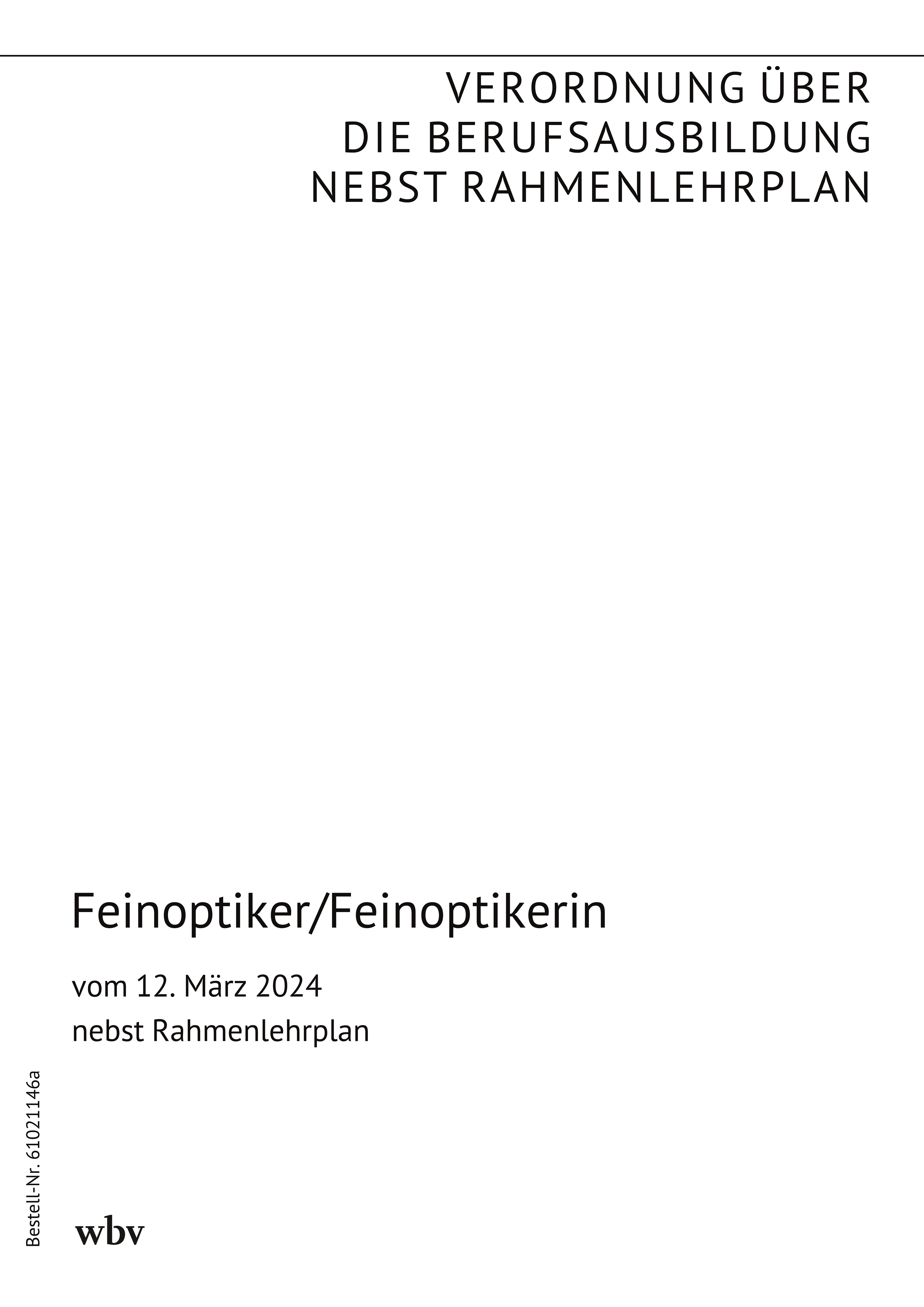 Verordnung über die Berufsausbildung zum Feinoptiker/zur Feinoptikerin vom 12. März 2024 (BGB. Nr. 95 vom 15. März 2024) nebst Rahmenlehrplan für den Ausbildungsberuf Feinoptiker/Feinoptikerin (Beschluss der Kultusministerkonferenz vom 15.12.2023)