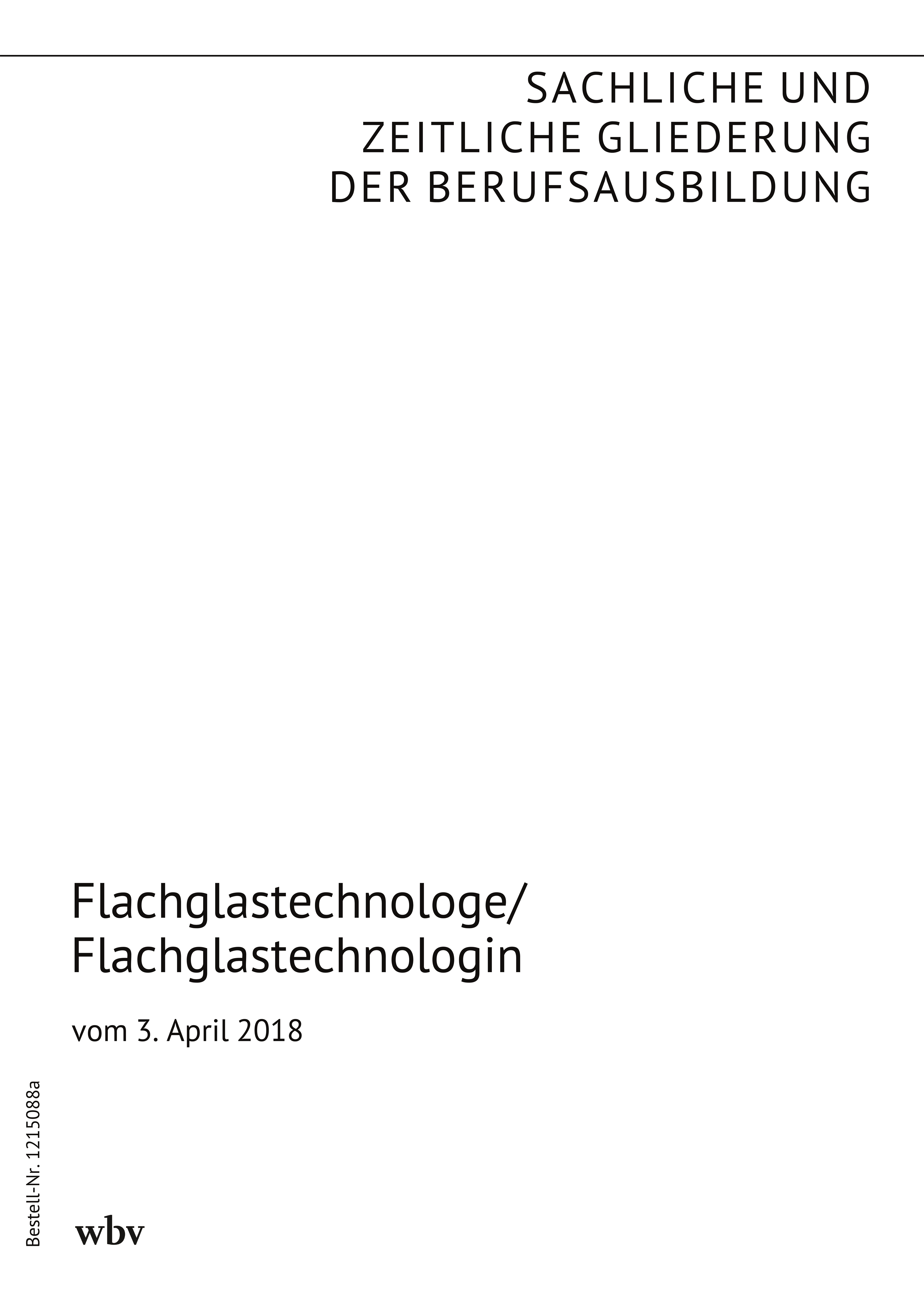 Die sachliche und zeitliche Gliederung der zu vermittelnden Kenntnisse und Fertigkeiten laut Ausbildungsrahmenplan der Ausbildungsverordnung vom 3. April 2018