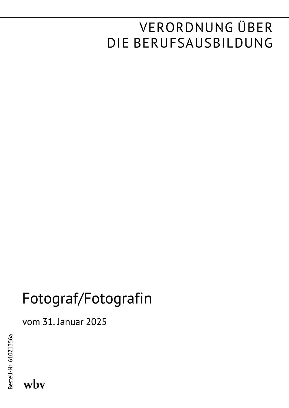 Verordnung über die Berufsausbildung zum Fotografen und zur Fotografin (Fotografen-Ausbildungsverordnung - FotoAusbV) vom 31. Januar 2025, veröffentlicht im BGBl. Nr. 29 vom 06.02.2025