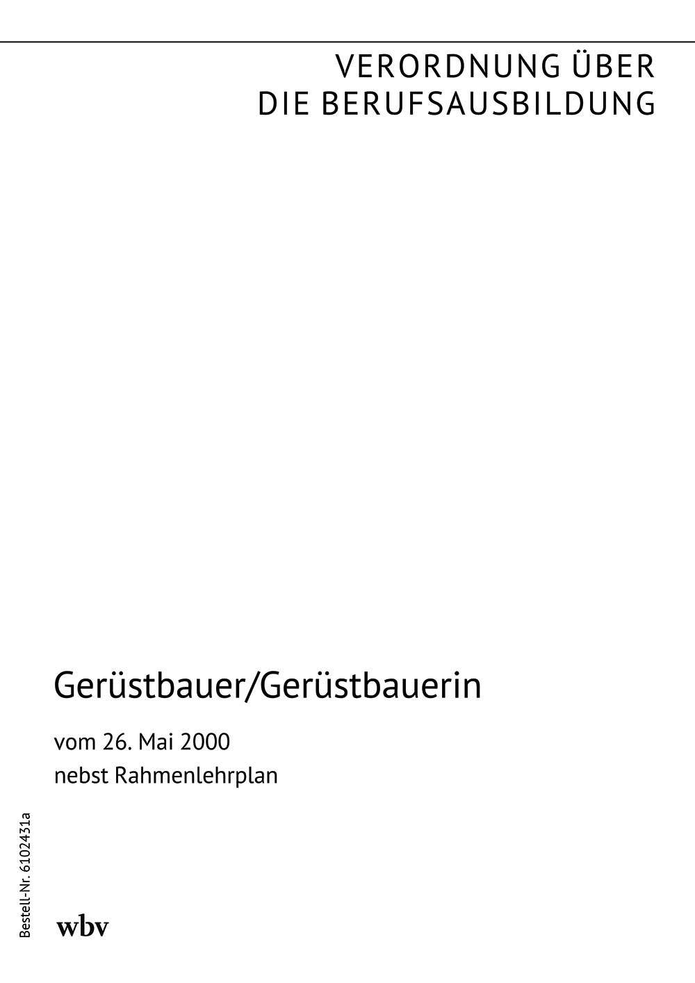 Verordnung über die Berufsausbildung zum Gerüstbauer/zur Gerüstbauerin vom 26. Mai 2000 (BGBl. I S. 778 vom 7. Juni 2000) nebst Rahmenlehrplan (Beschluss der Kultusministerkonferenz vom 14. April 2000, Beilage zum Bundesanzeiger Nr. 179 a vom 21. September 2000)
