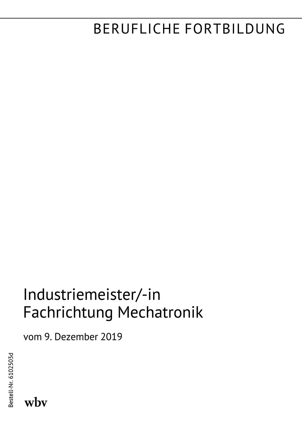 Verordnung über die Prüfung zum anerkannten Abschluss Geprüfter Industriemeister/Geprüfte Industriemeisterin - Fachrichtung Mechatronik vom 19. Oktober 2005 (BGBI. I S. 3037) zuletzt geändert durch Artikel 52 der Verordnung vom 9. Dezember 2019 (BGBl. I S. 2153)