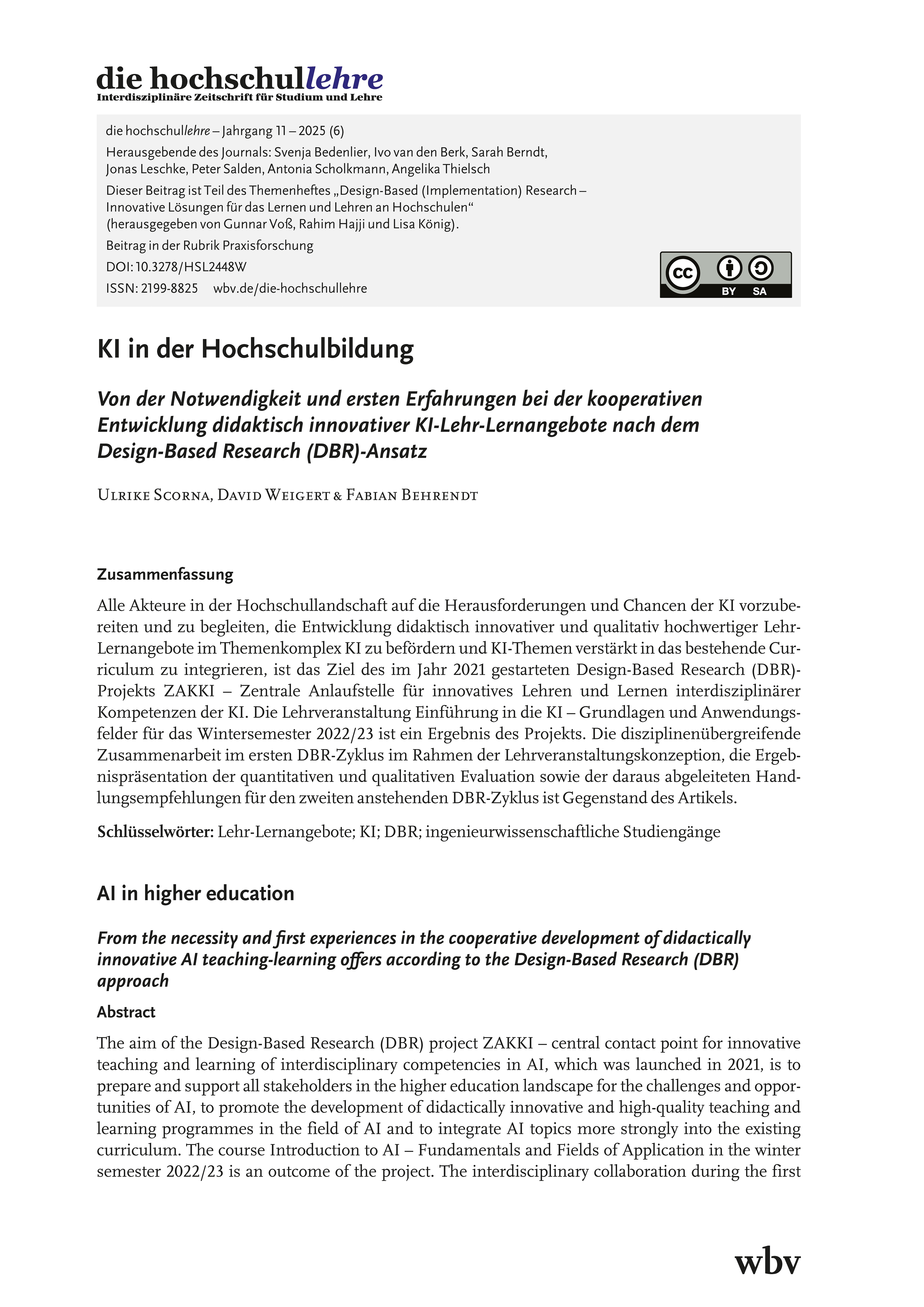 Scorna, U., Weigert, D. & Behrendt, F. (2025). KI in der Hochschulbildung. die hochschullehre, Jahrgang 11/2025. DOI: 10.3278/HSL2448W