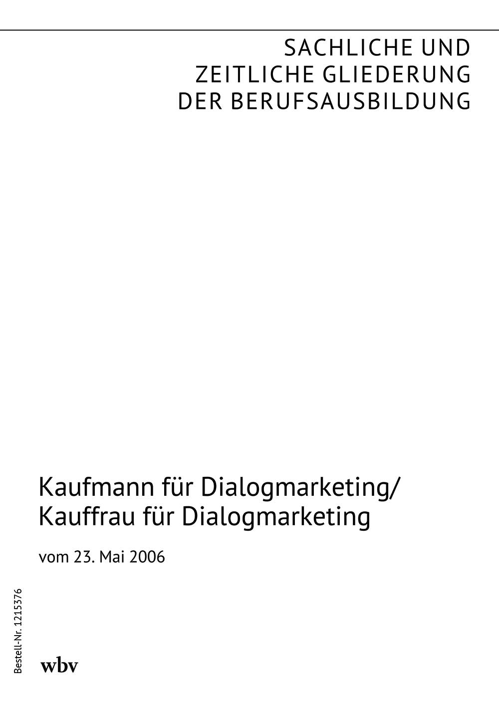 Die sachliche und zeitliche Gliederung der zu vermittelnden Kenntnisse und Fertigkeiten laut Ausbildungsrahmenplan der Ausbildungsverordnung vom 23. Mai 2006.