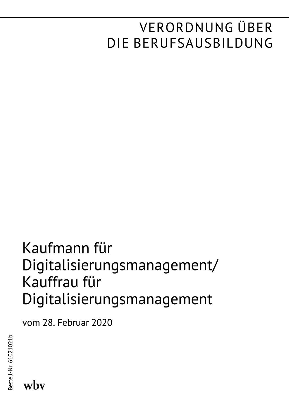 Verordnung über die Berufsausbildung zum Kaufmann für Digitalisierungsmanagement und zur Kauffrau für Digitalisierungsmanagement vom 28. Februar 2020 (BGBl. I S. 290 vom 5. März 2020)