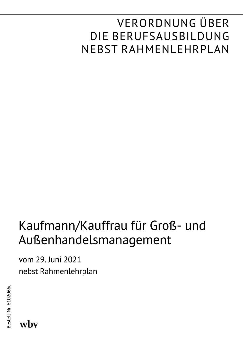 Verordnung über die Berufsausbildung zum Kaufmann für Groß- und Außenhandelsmanagemen tund zur Kauffrau für Groß- und Außenhandelsmanagement vom 19. März 2020 (BGBl. I S. 715), geändert durch die Verordnung vom 29. Juni 2021 (BGBl. I S. 2244) nebst Rahmenlehrplan (Beschluss der Kultusministerkonferenz vom 13. Dezember 2019)