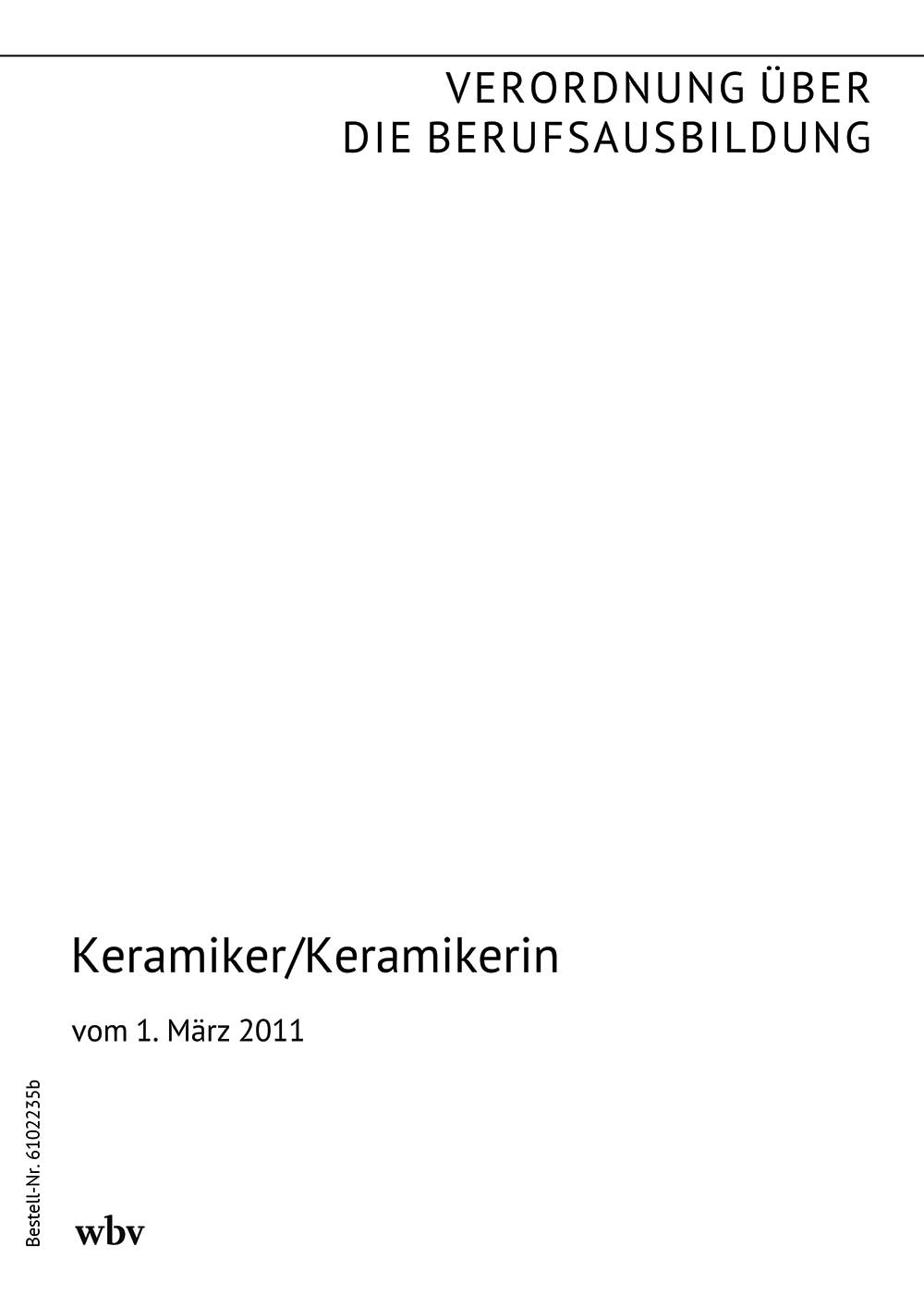 Verordnung über die Berufsausbildung zum Keramiker/zur Keramikerin vom 27. Mai 2009 (BGBl. I S. 1177 vom 4. Juni 2009), zuletzt geändert durch die Verordnung vom 1. März 2011 (BGBl. I S. 363 vom 11. März 2011)