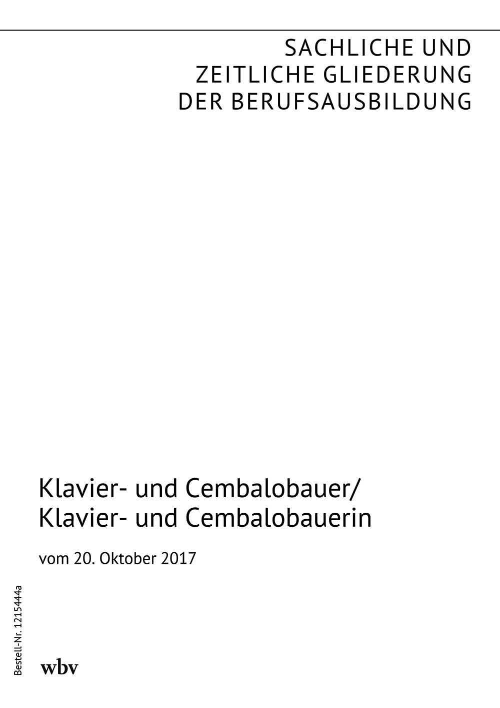 Die sachliche und zeitliche Gliederung der zu vermittelnden Kenntnisse und Fertigkeiten laut Ausbildungsrahmenplan der Ausbildungsverordnung vom 20. Oktober 2017.