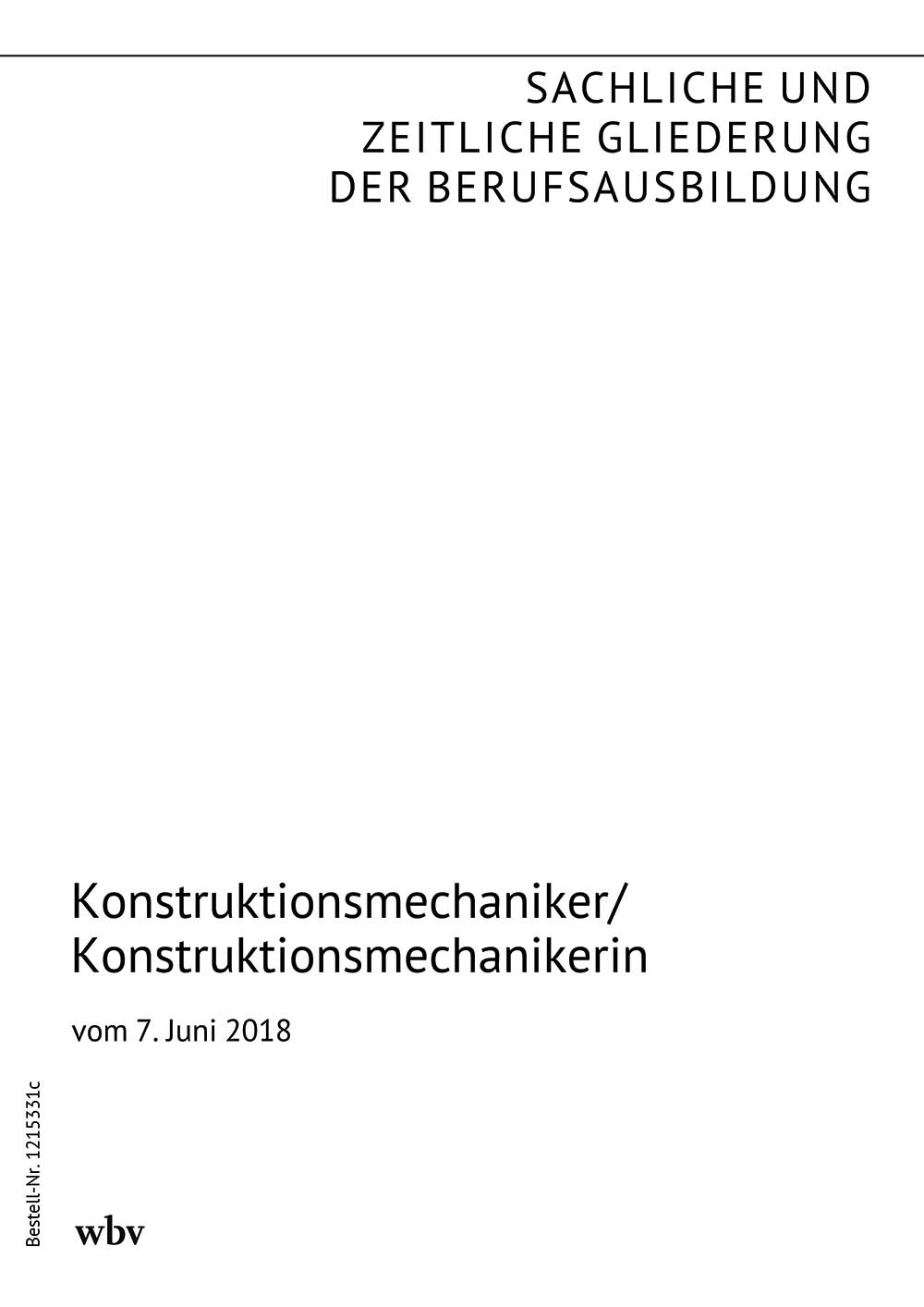 Die sachliche und zeitliche Gliederung der zu vermittelnden Kenntnisse und Fertigkeiten laut Ausbildungsrahmenplan der Ausbildungsverordnung vom 7. Juni 2018